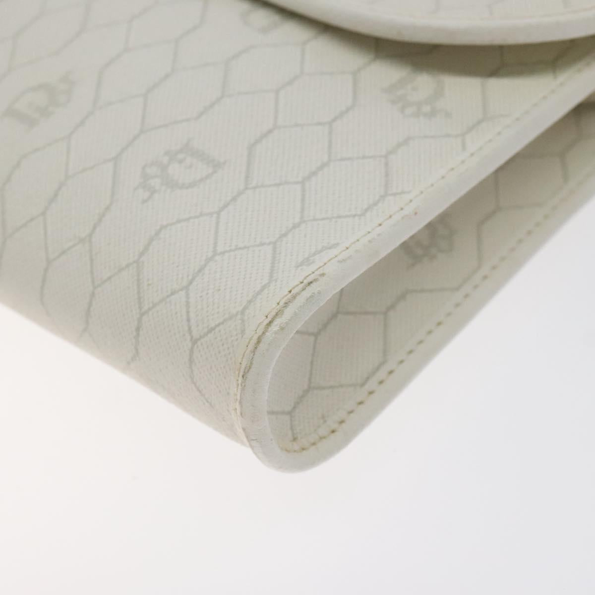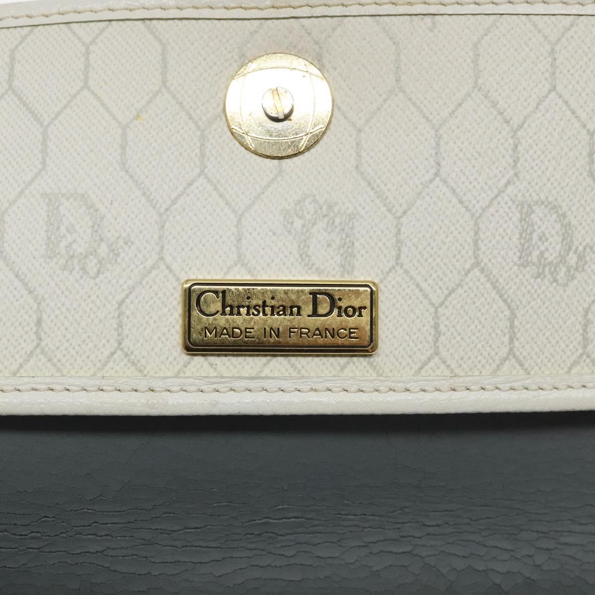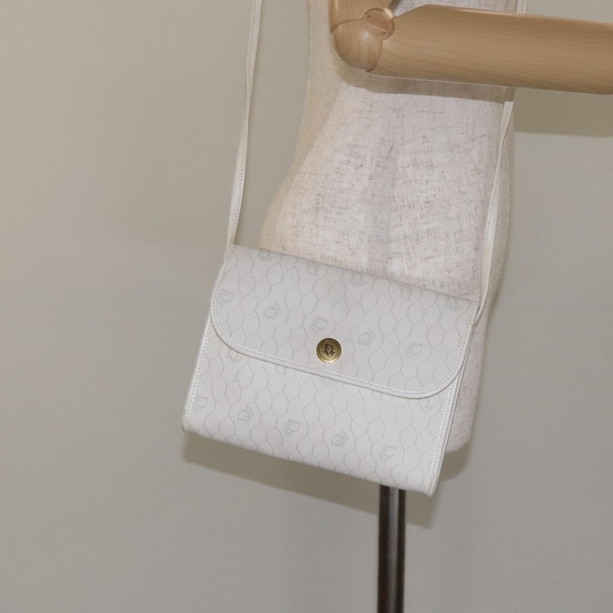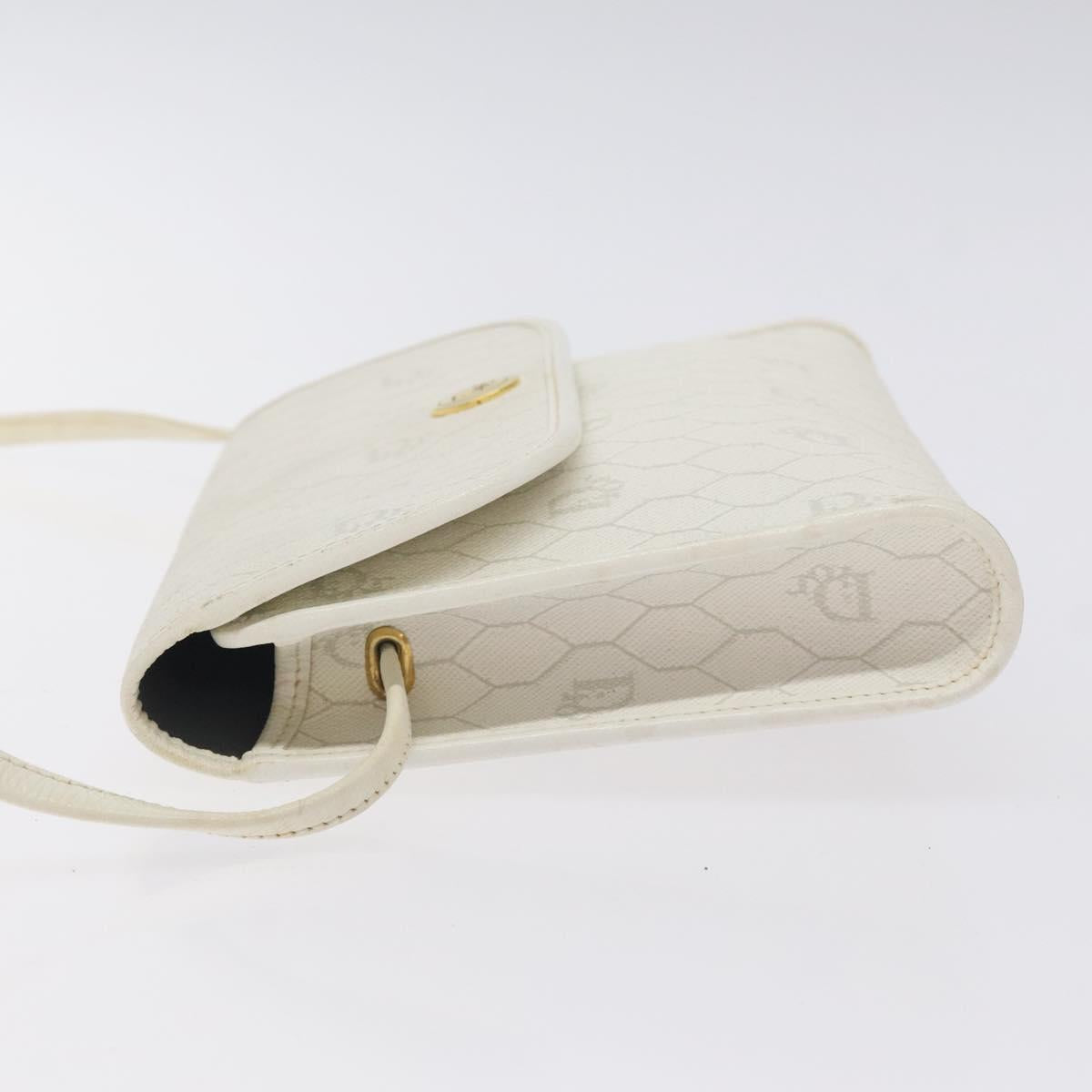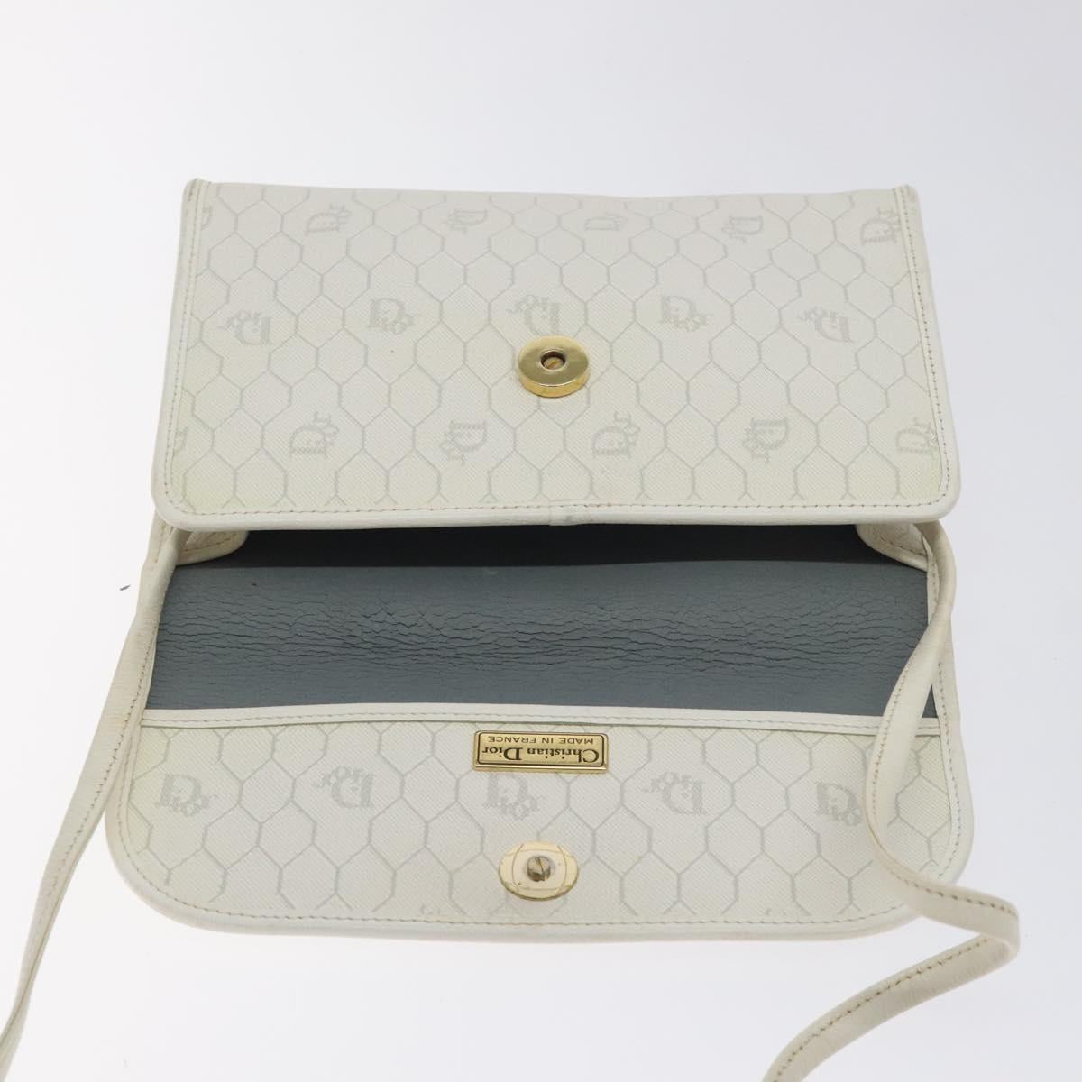 Christian Dior Honeycomb Canvas Shoulder Bag PVC White Gold Auth BA3542