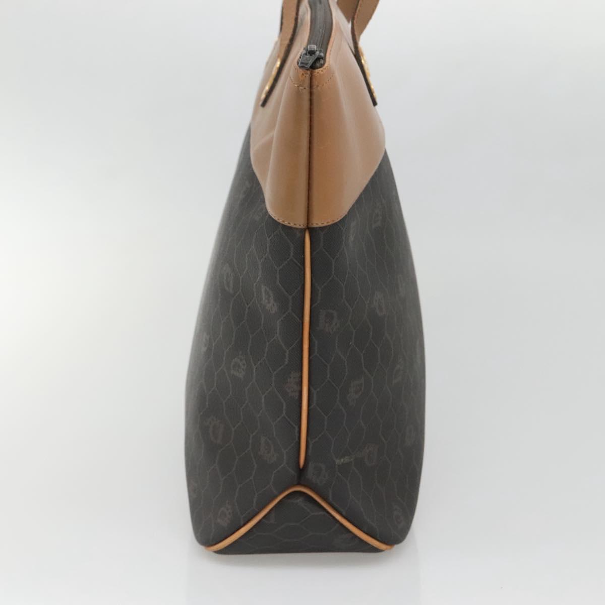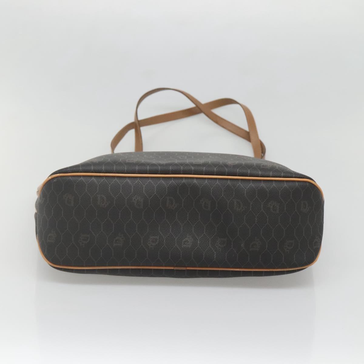 Christian Dior Honeycomb Canvas Tote Bag PVC Black Gold Auth SW1460