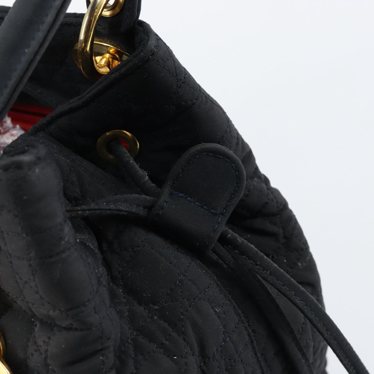 Christian Dior Lady Dior Canage Hand Bag Nylon Black Gold Auth BA5759