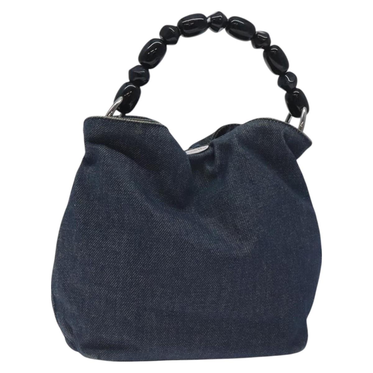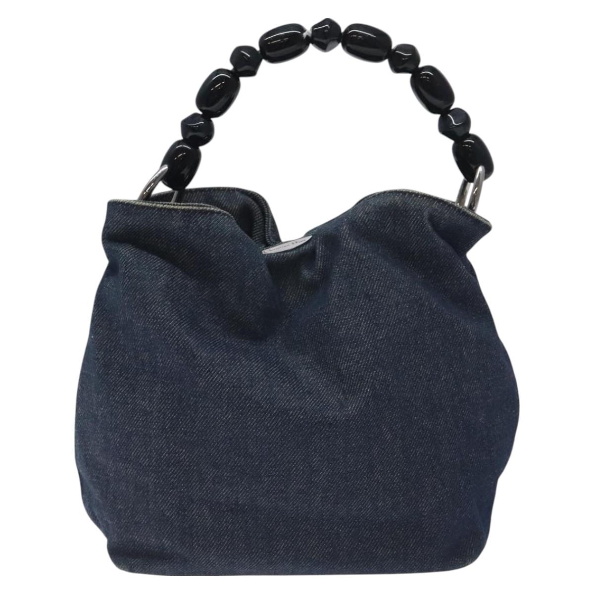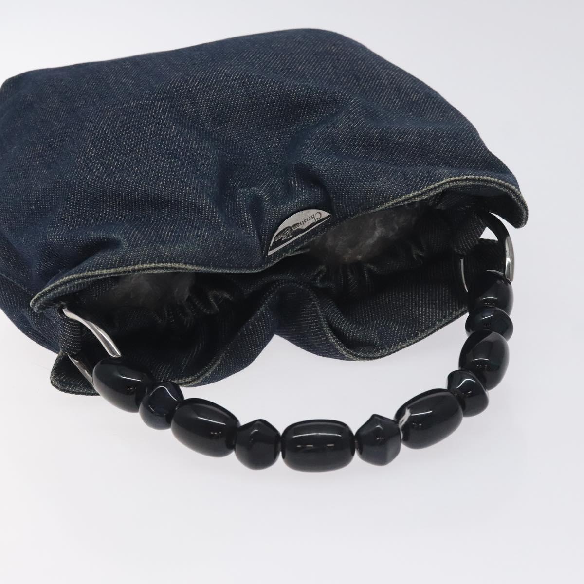 Christian Dior Maris Pearl Hand Bag Denim Blue Auth SW980