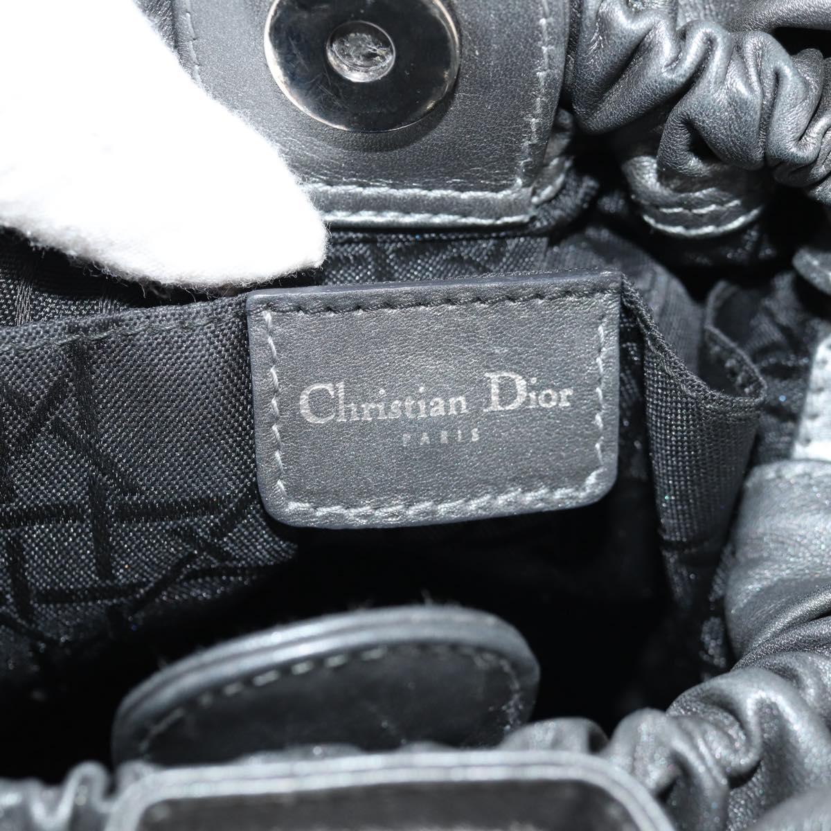 Christian Dior Maris Pearl Hand Bag Leather Silver Auth sw1587V