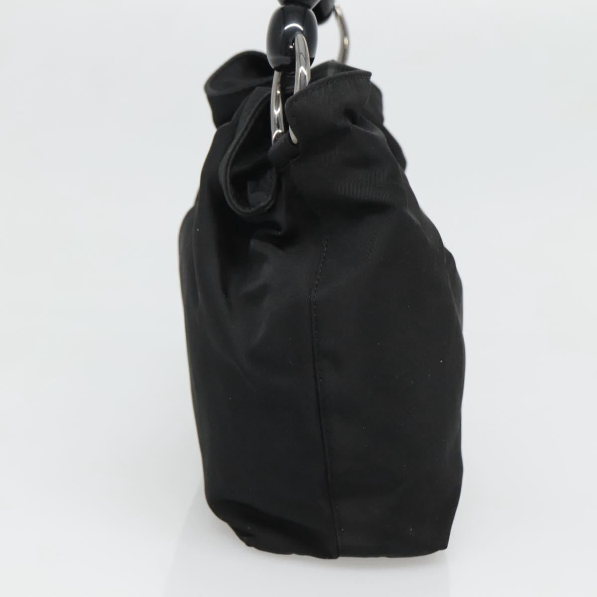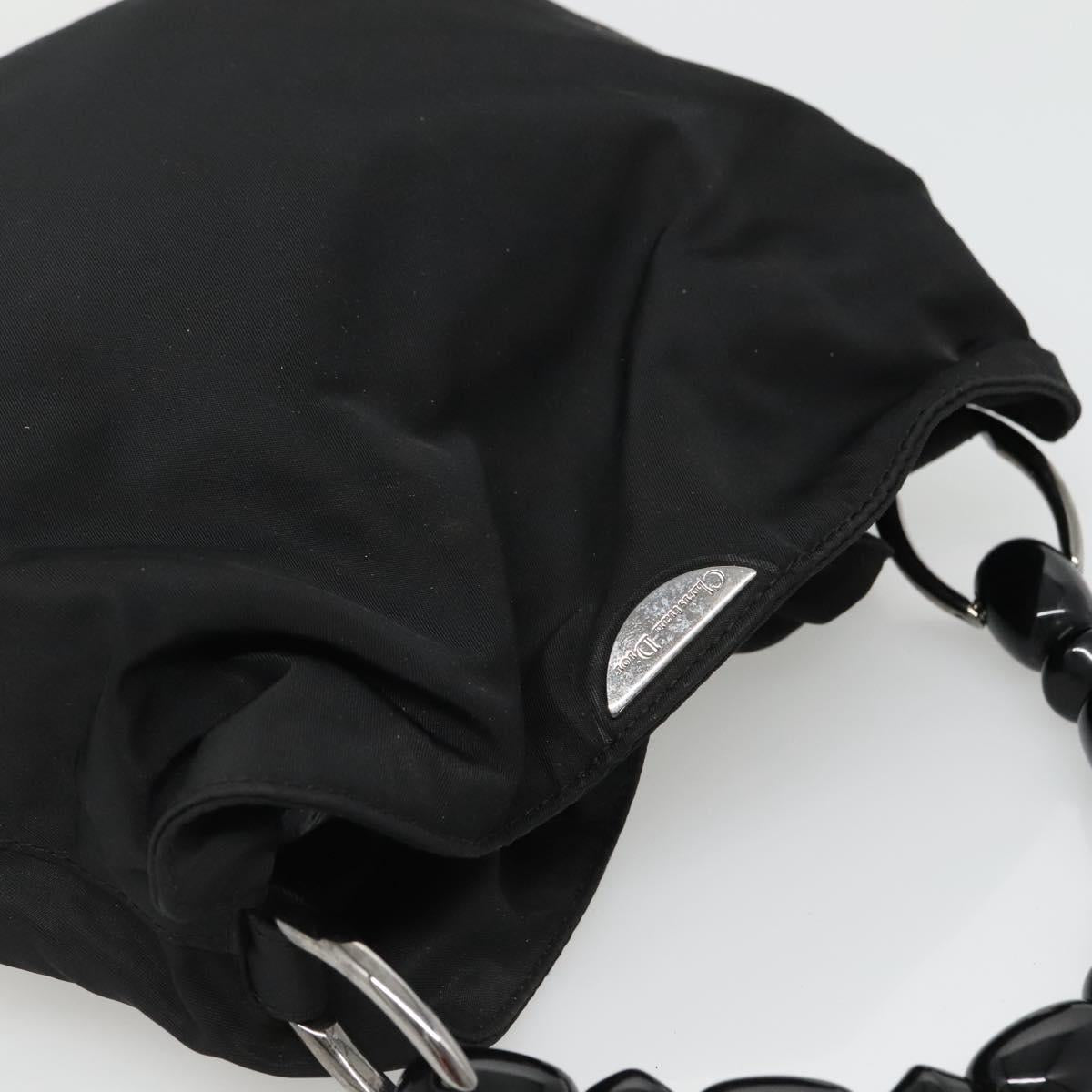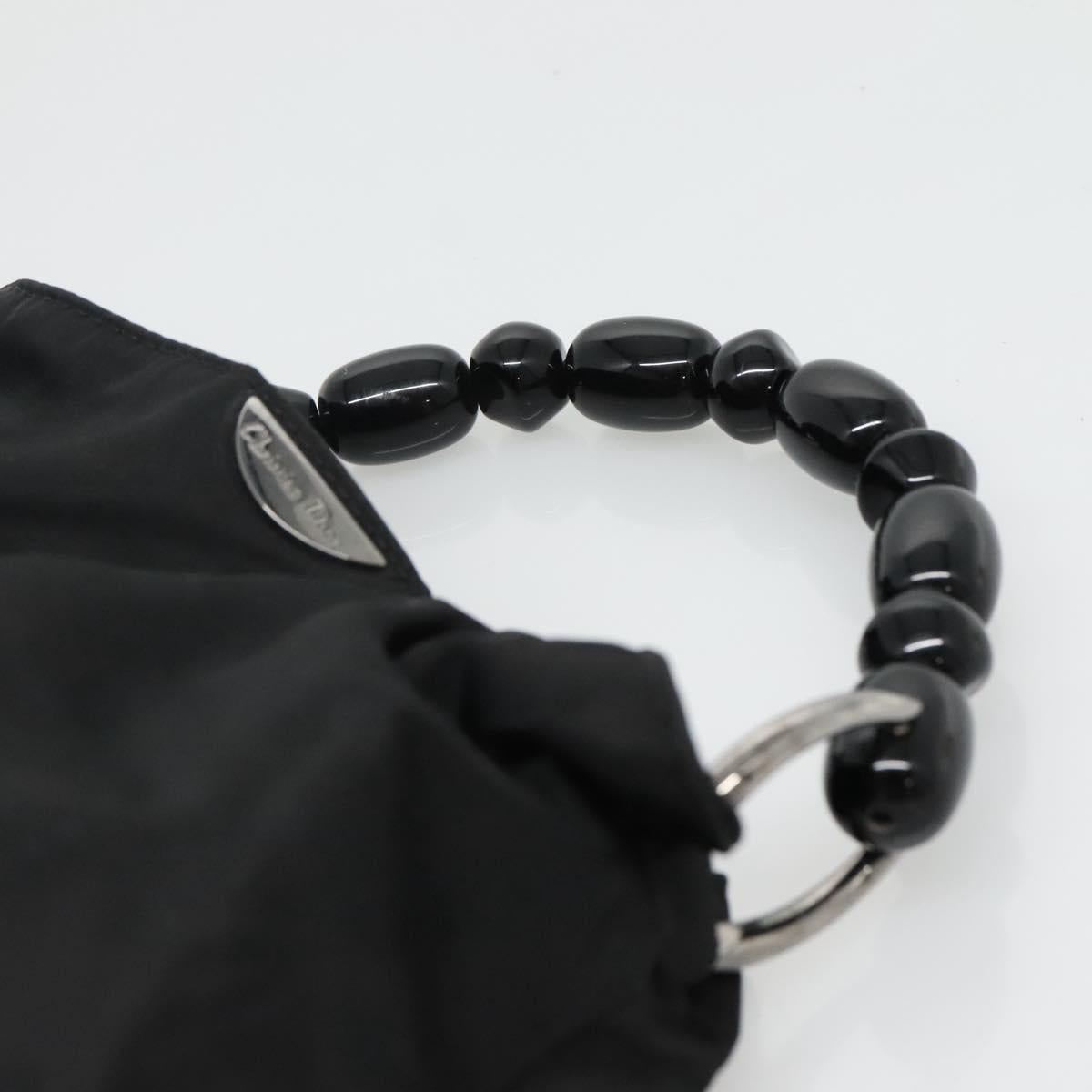 Christian Dior Maris Pearl Hand Bag Nylon Black Silver Auth BA3451