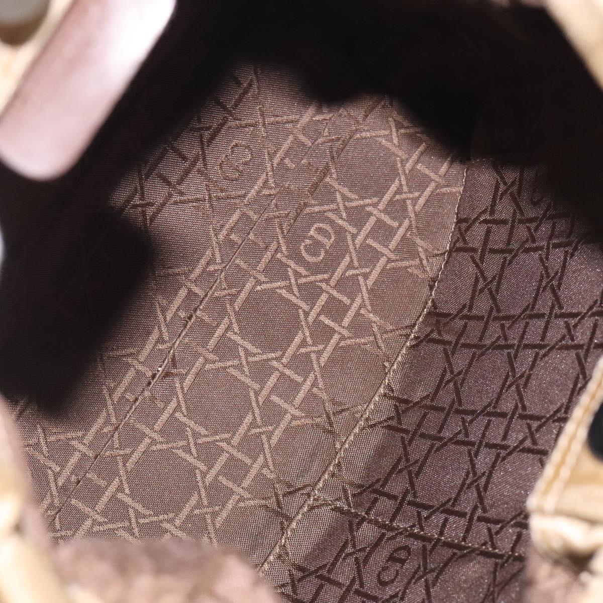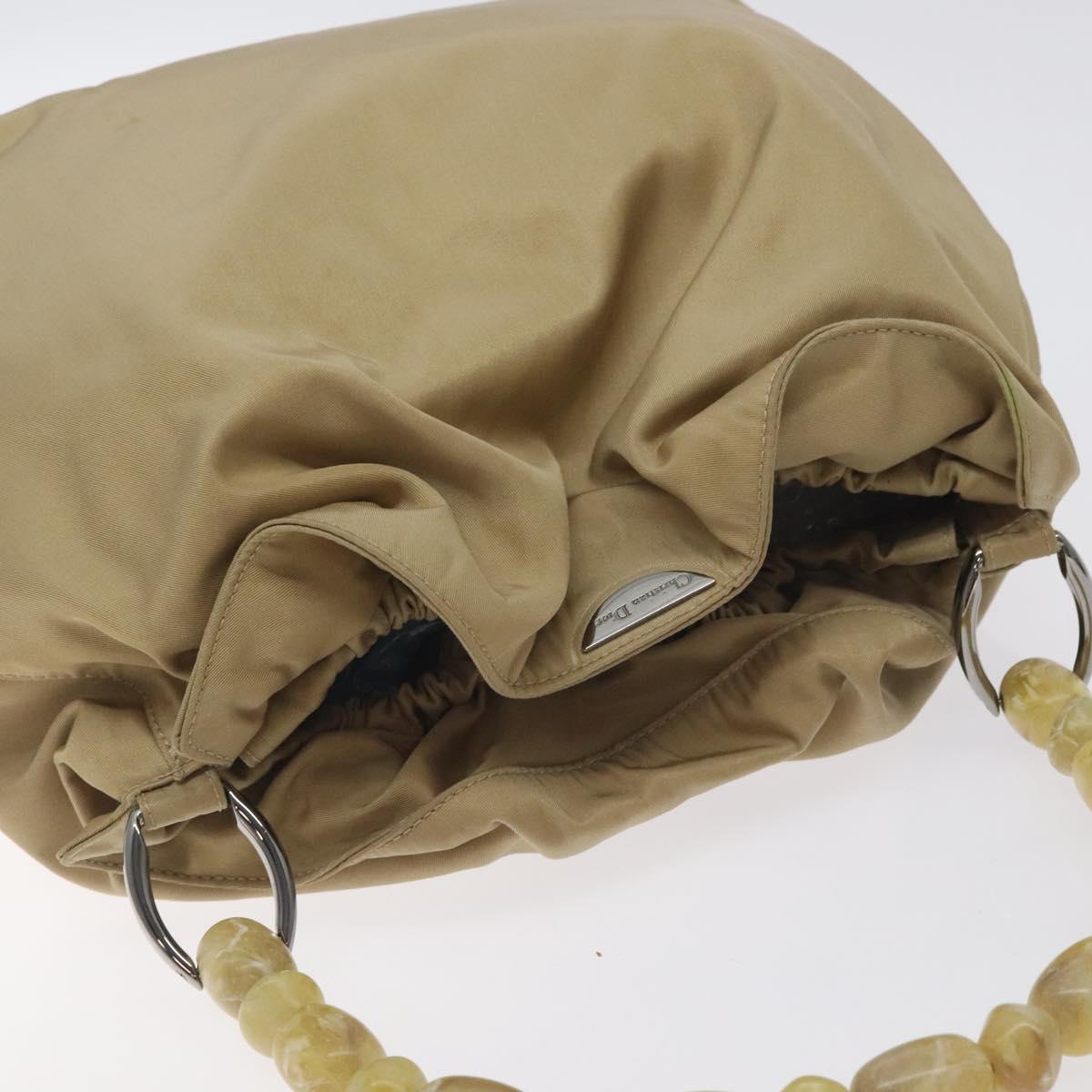 Christian Dior Maris Pearl Shoulder Bag Nylon Beige Silver Auth BA3544