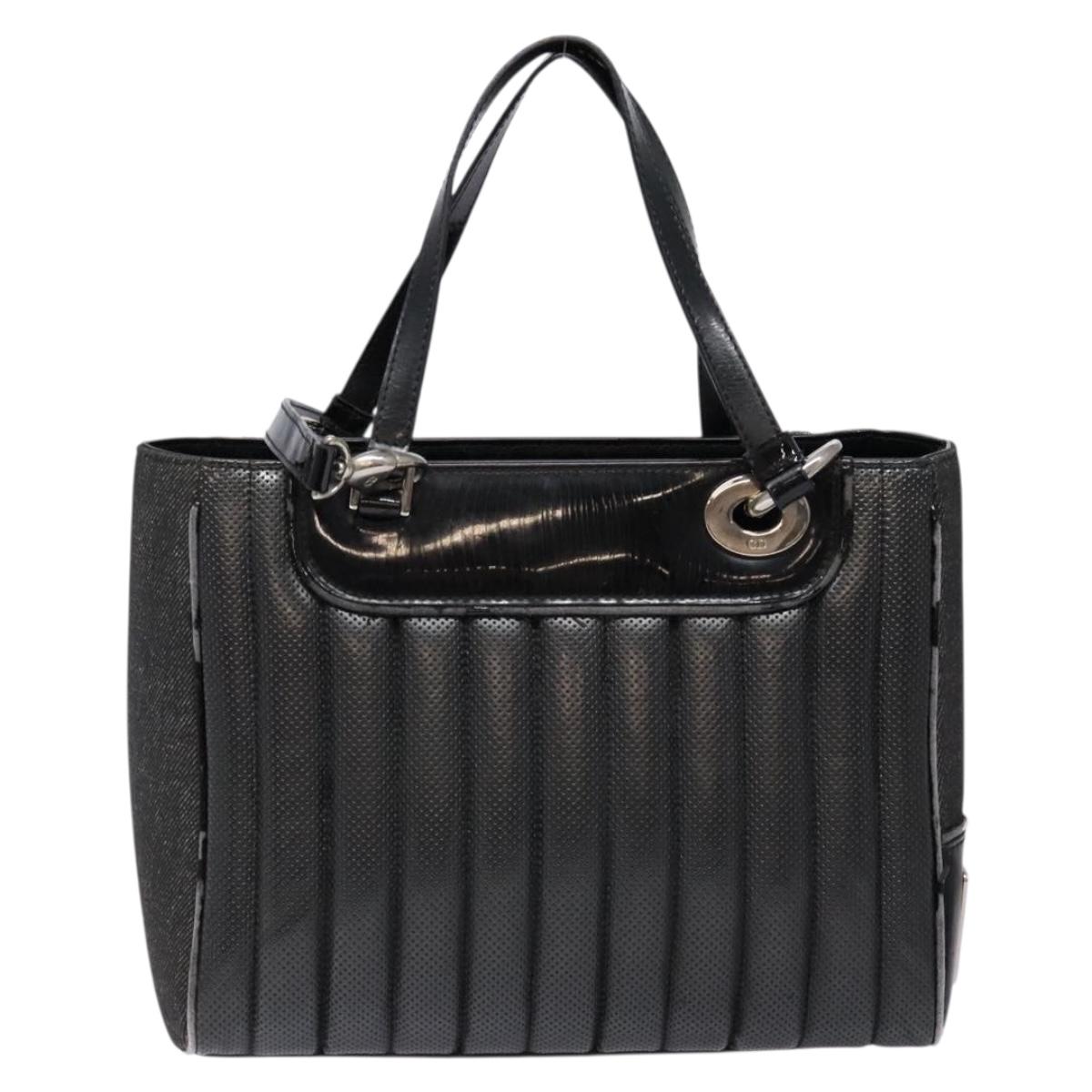 Christian Dior Montaigne Hand Bag Canvas Leather 2way Black Silver Auth 137291