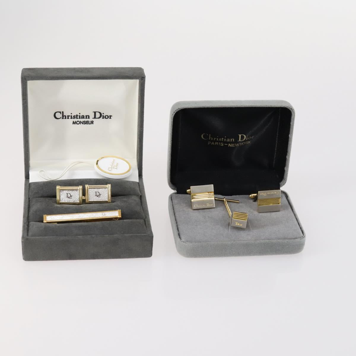 Christian Dior Nek Tie Pin Cuffs metal 2Set Gold Tone Auth 146046