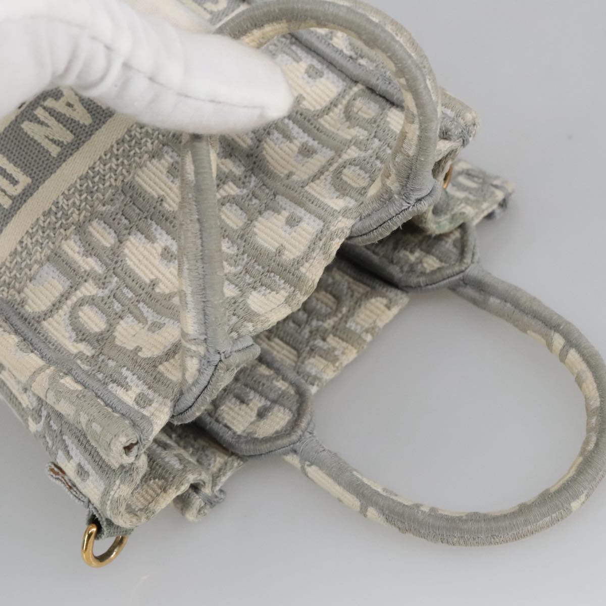 Christian Dior Oblique Vertical Book Tote Tote Bag Canvas Gray Auth 100796AV