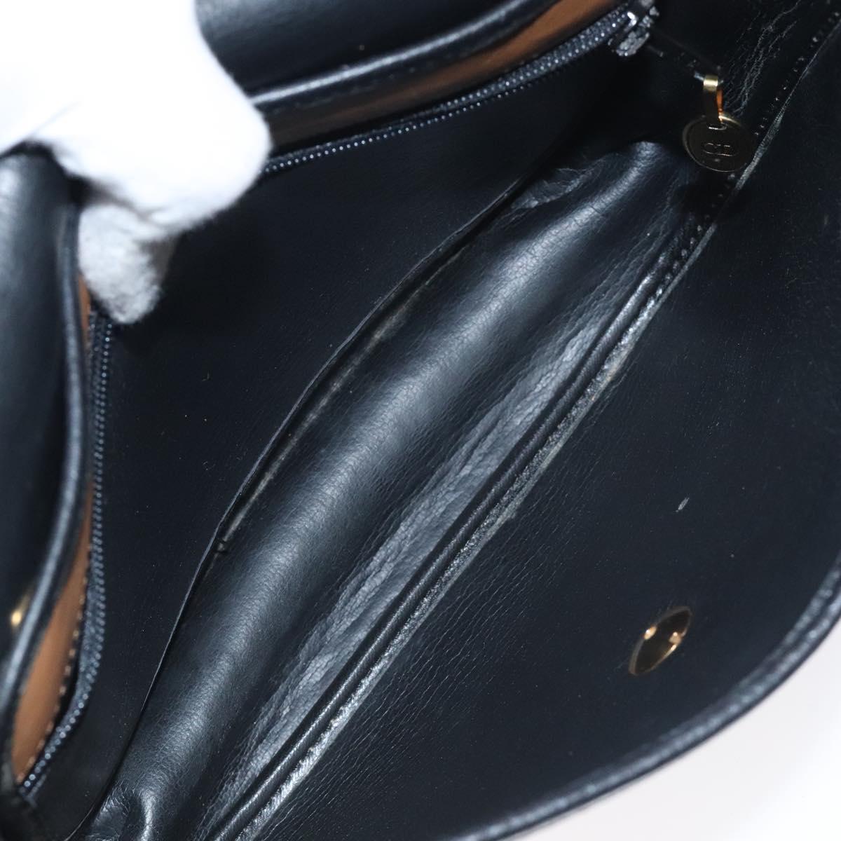 Christian Dior Shoulder Bag Leather Black Gold Auth BA3573