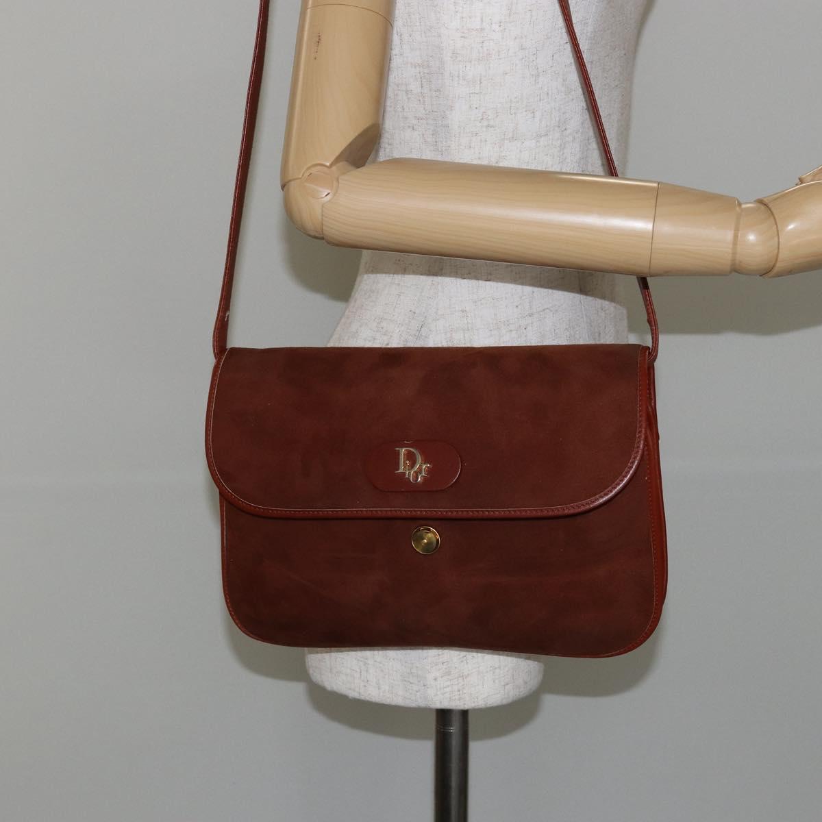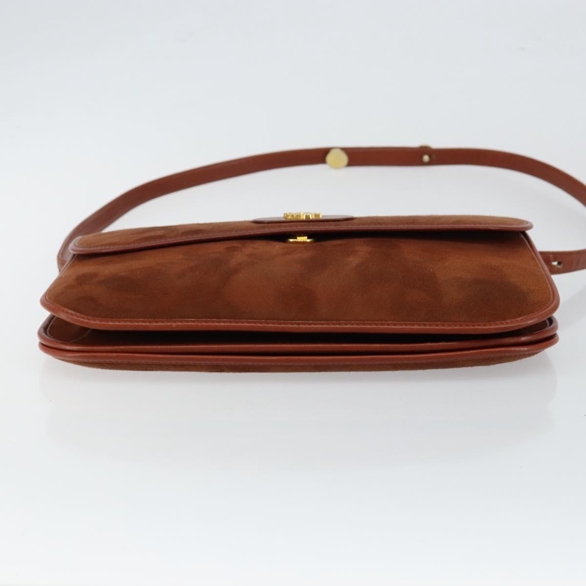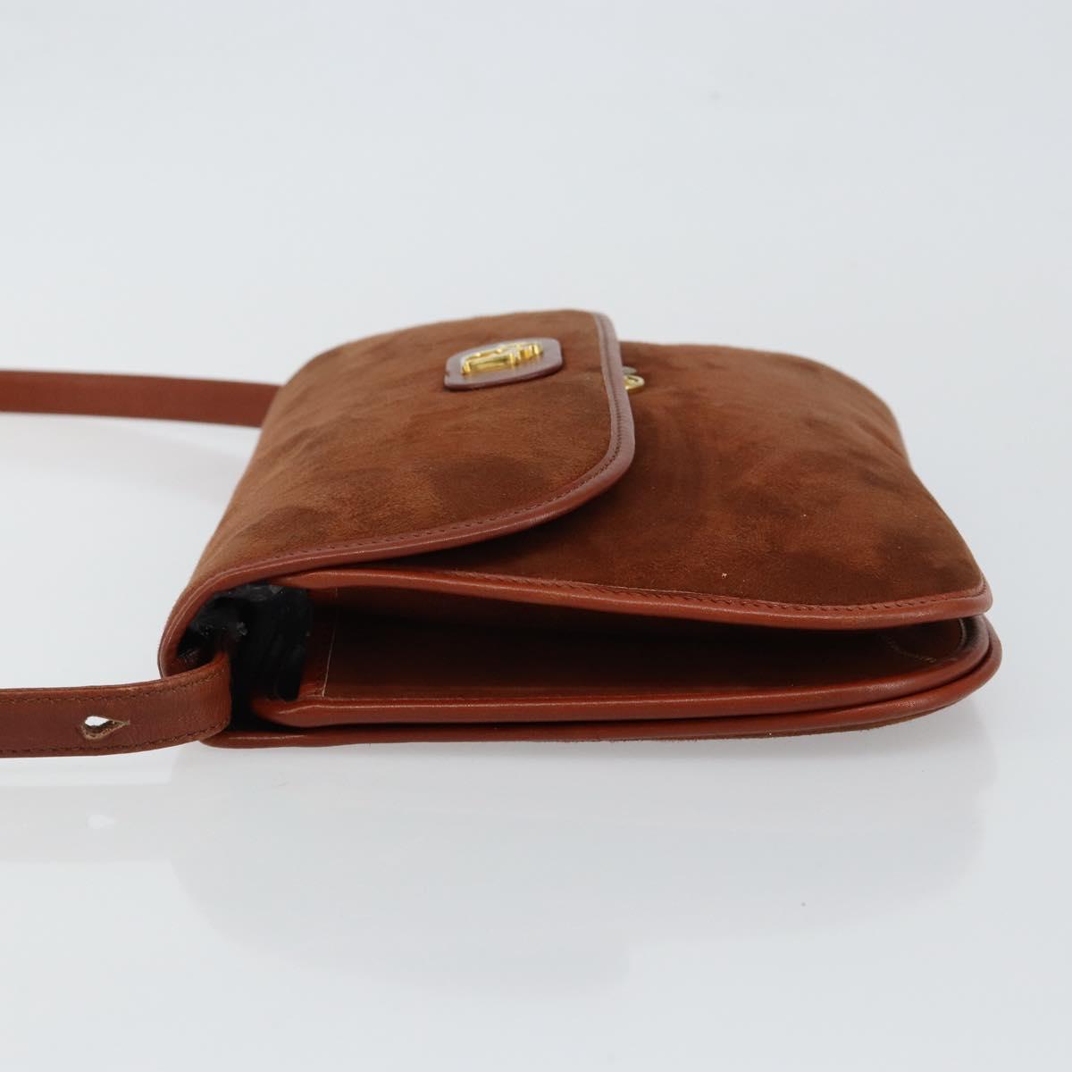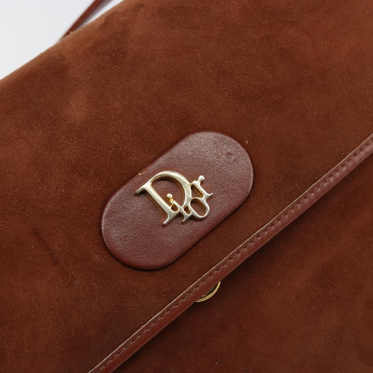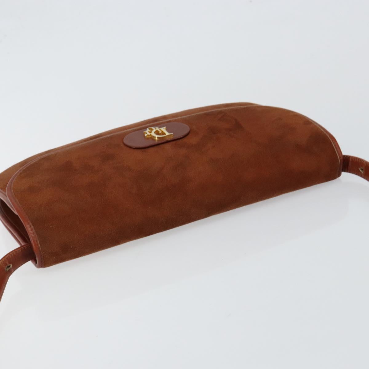 Christian Dior Shoulder Bag Suede Brown Gold Auth fm4882