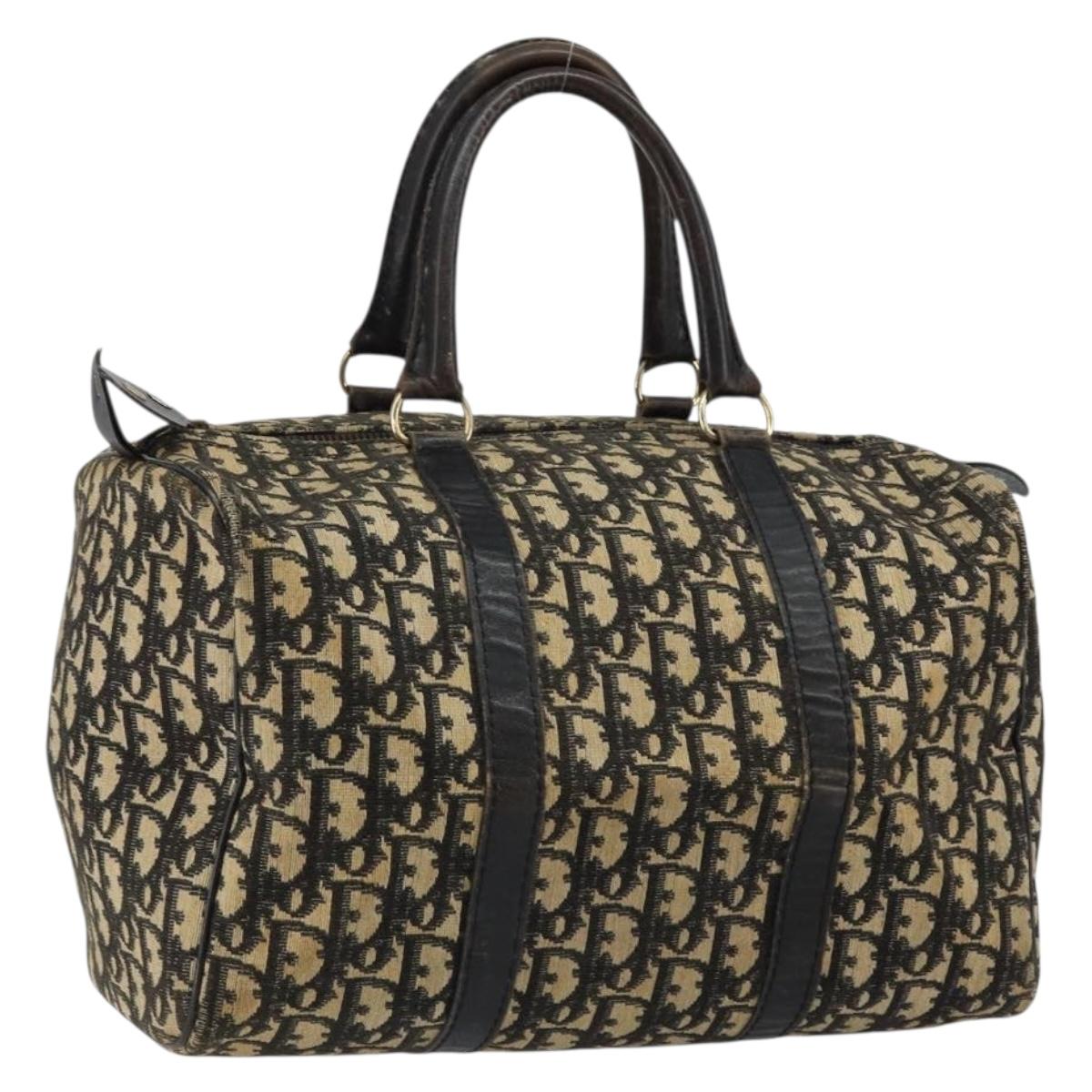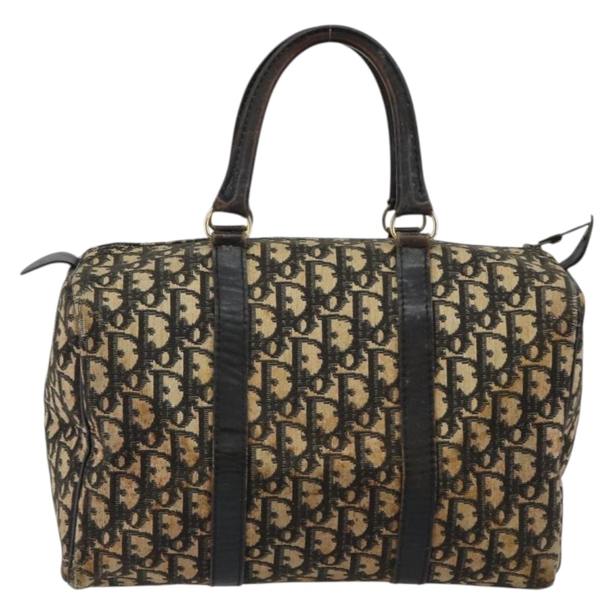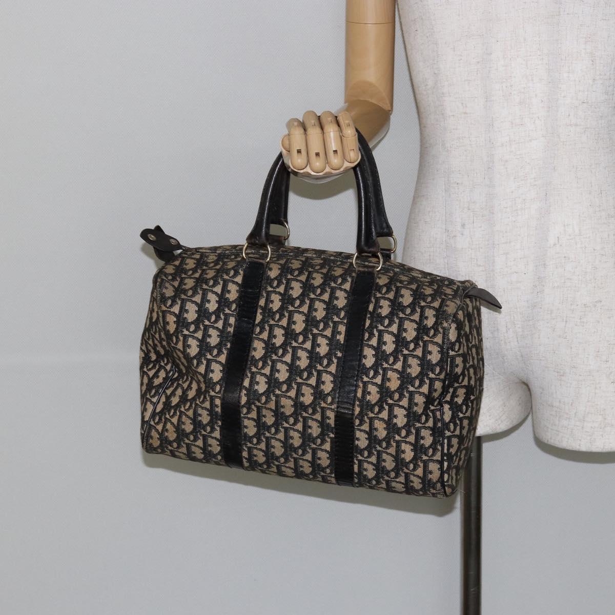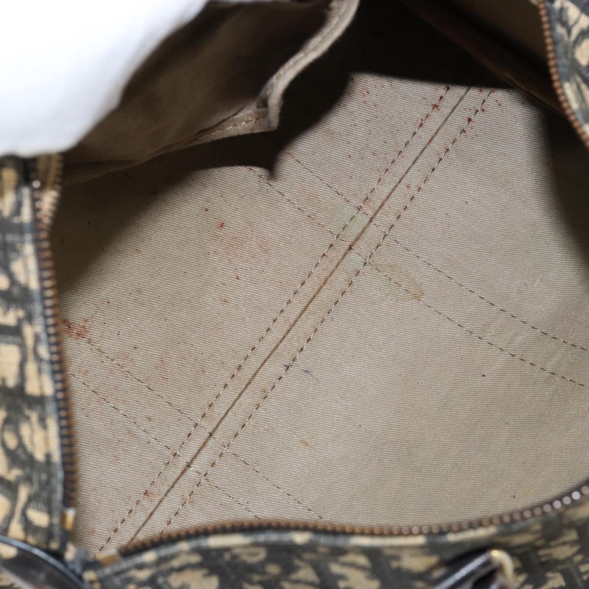 Christian Dior Trotter Canvas Boston Bag Navy Gold Auth 146290