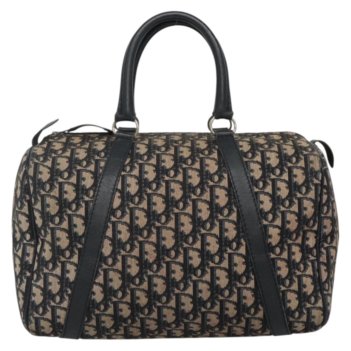 Christian Dior Trotter Canvas Boston Bag Navy Silver Auth ep10723