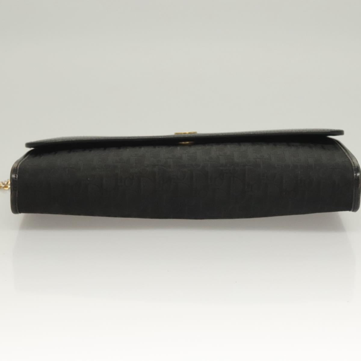 Christian Dior Trotter Canvas Chain Shoulder Bag Black Gold Auth BA3240
