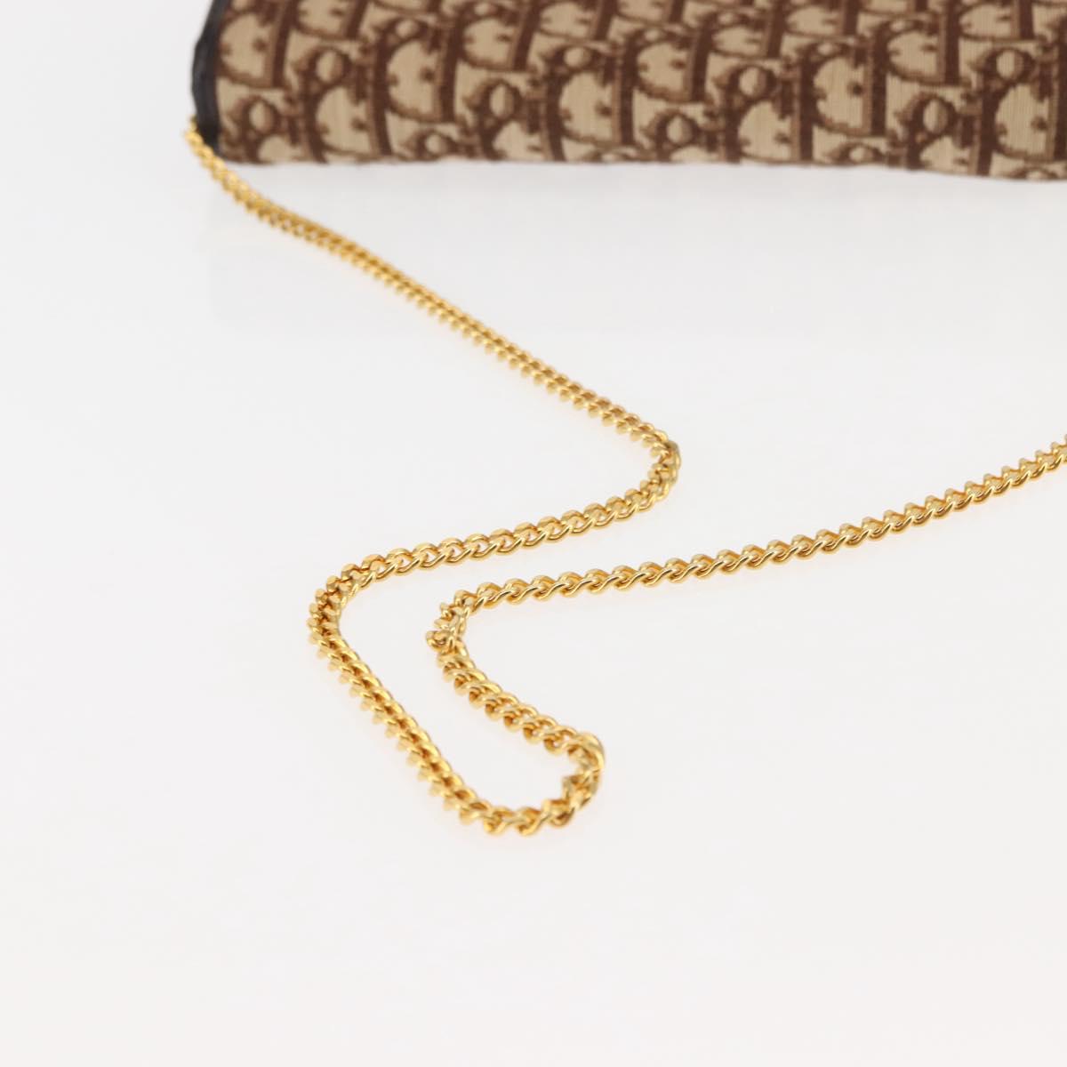 Christian Dior Trotter Canvas Chain Shoulder Bag Brown Gold Auth 145878