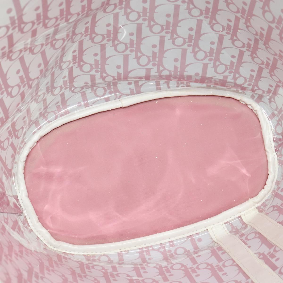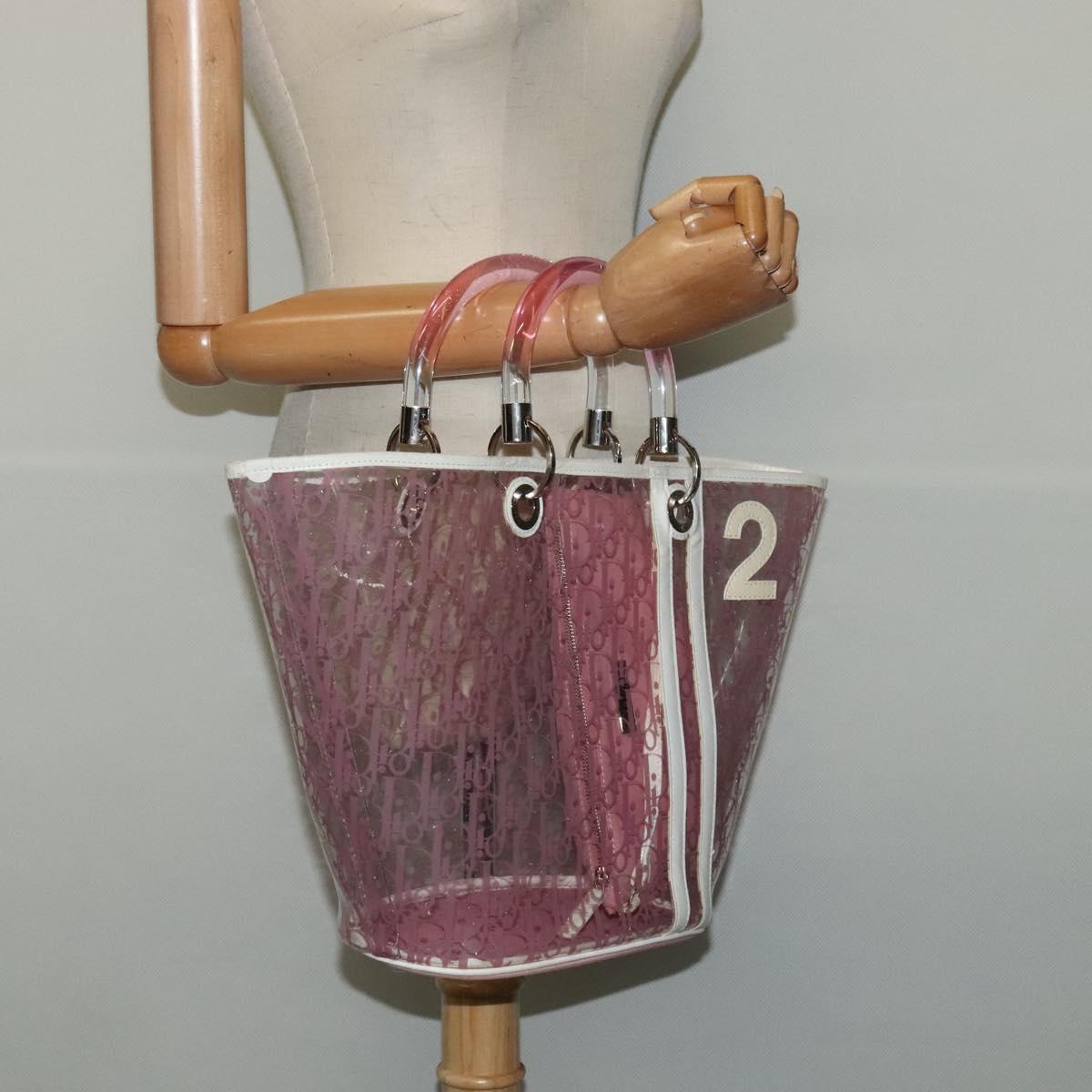 Christian Dior Trotter Canvas Hand Bag Vinyl Clear Silver Auth 140276