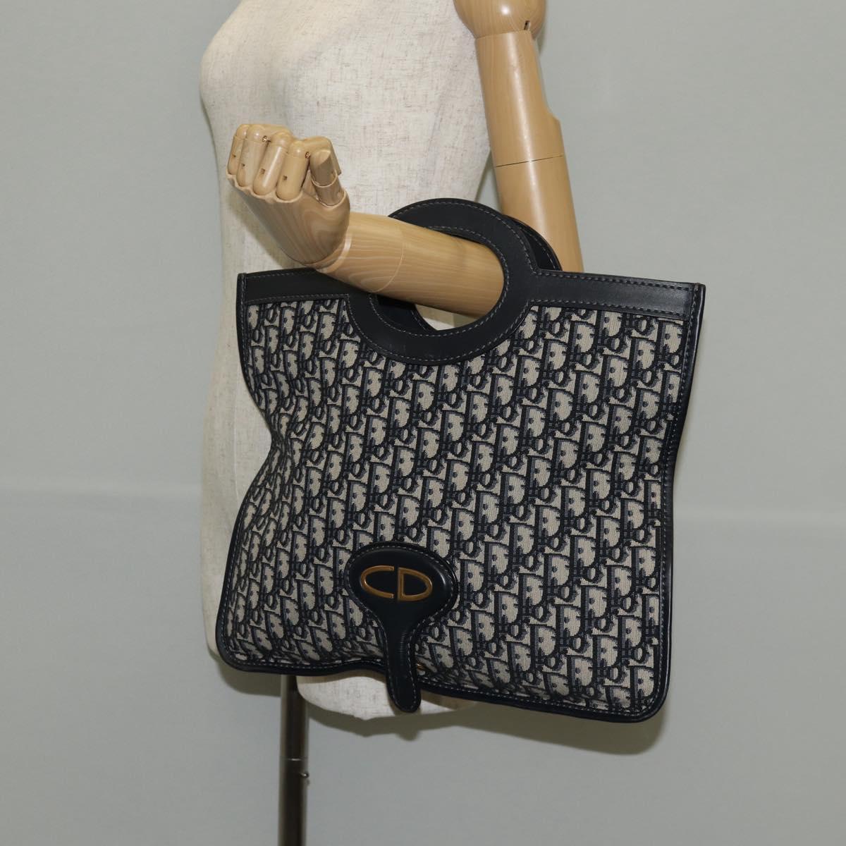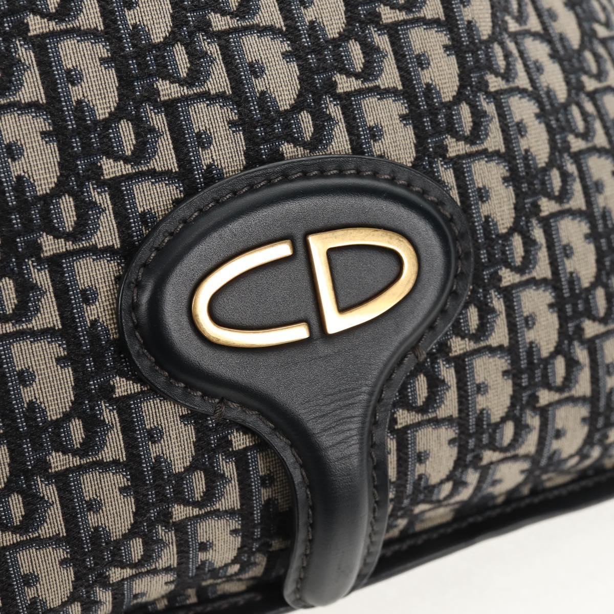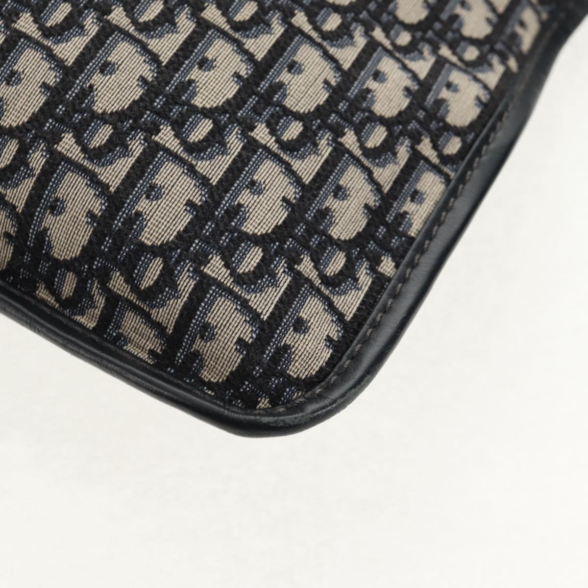 Christian Dior Trotter Canvas Oblique Clutch Bag Navy Gold Auth 145258A
