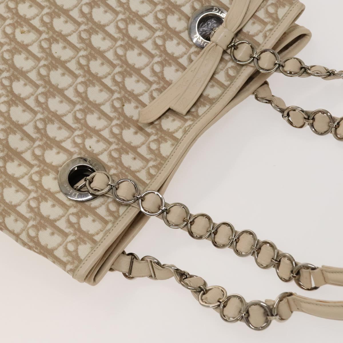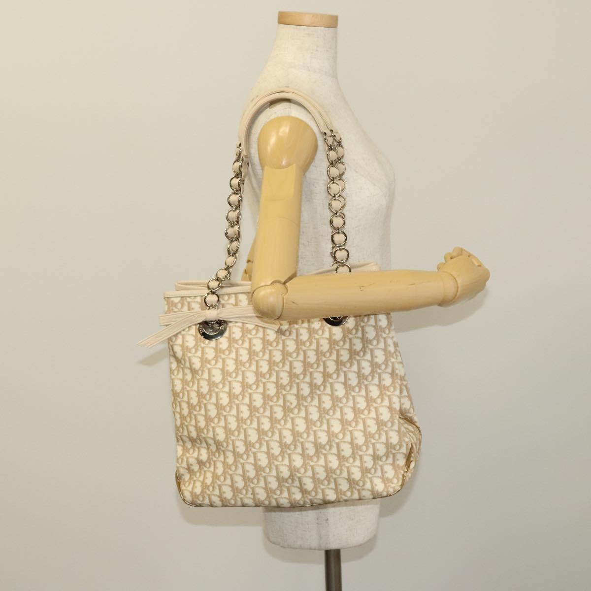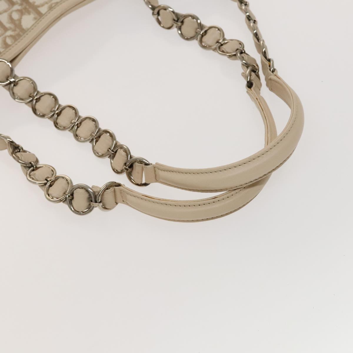 Christian Dior Trotter Canvas Romantic Tote Bag PVC Beige Silver Auth 128666