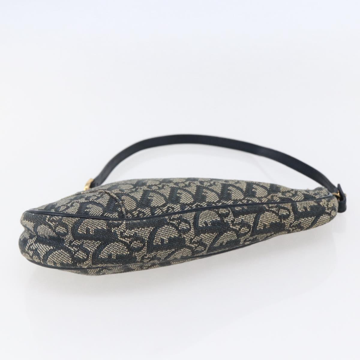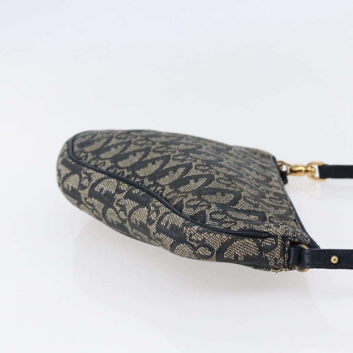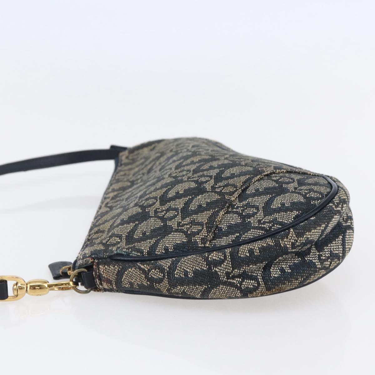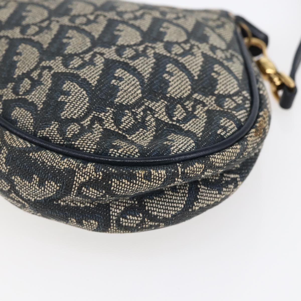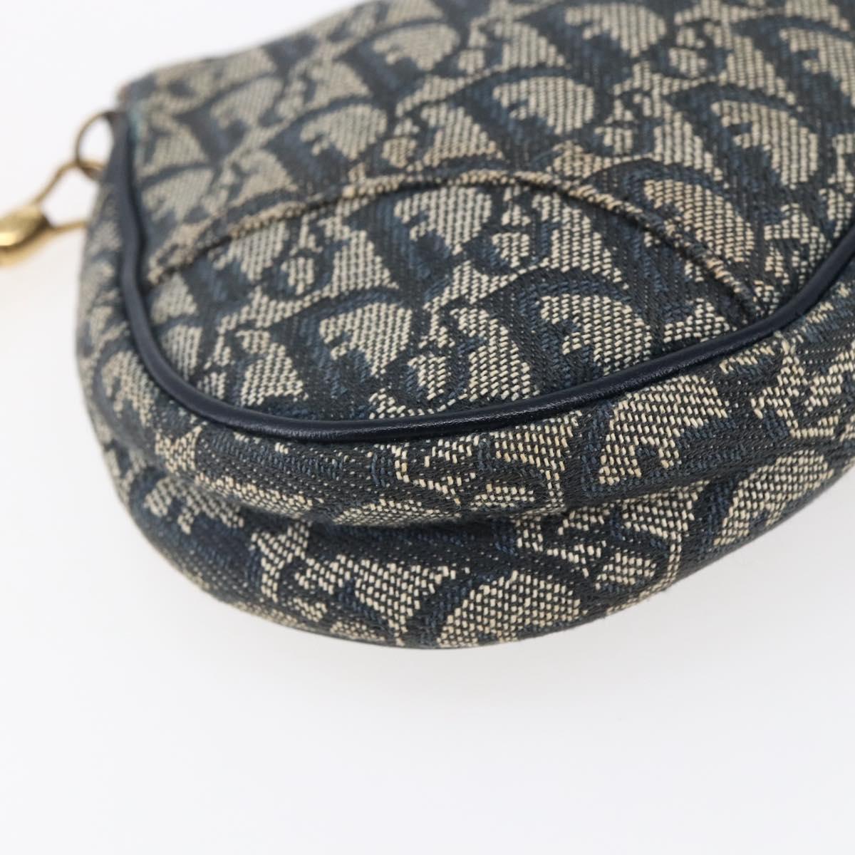 Christian Dior Trotter Canvas Saddle Pouch Navy Gold Auth 146367