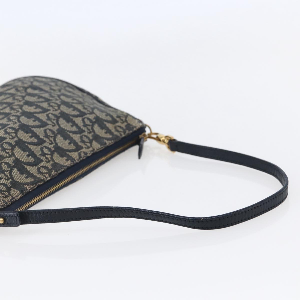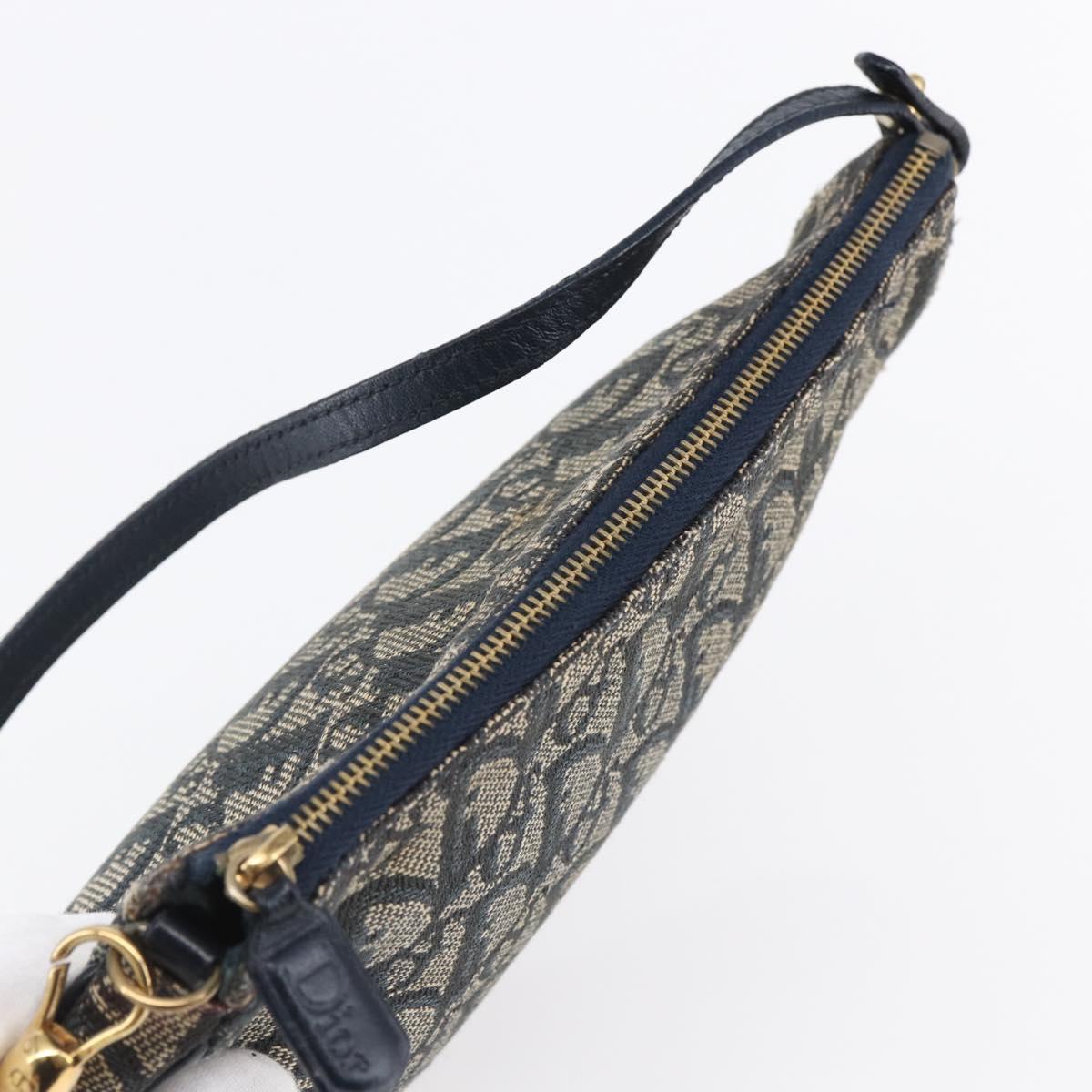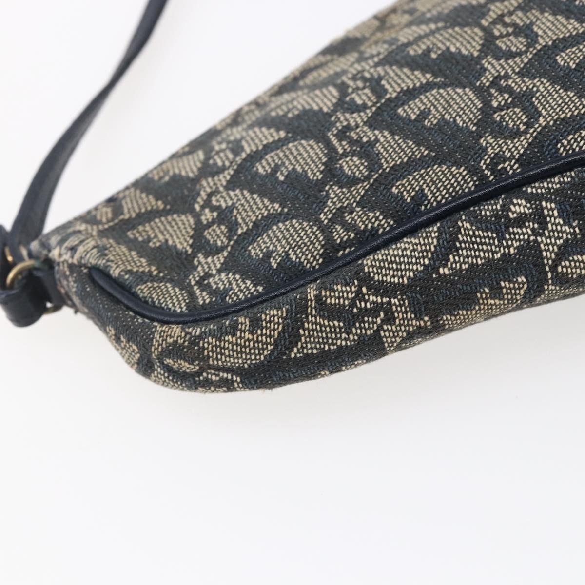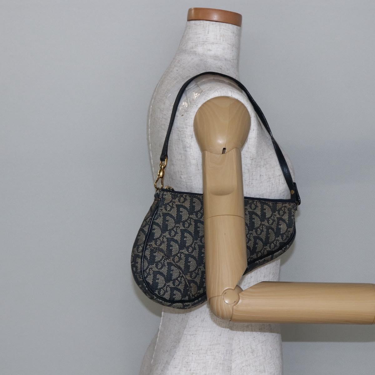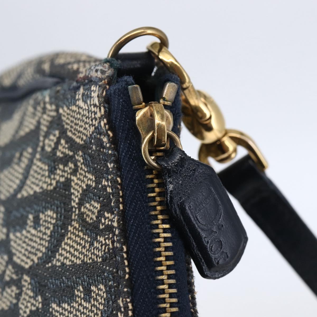 Christian Dior Trotter Canvas Saddle Pouch Navy Gold Auth 146367