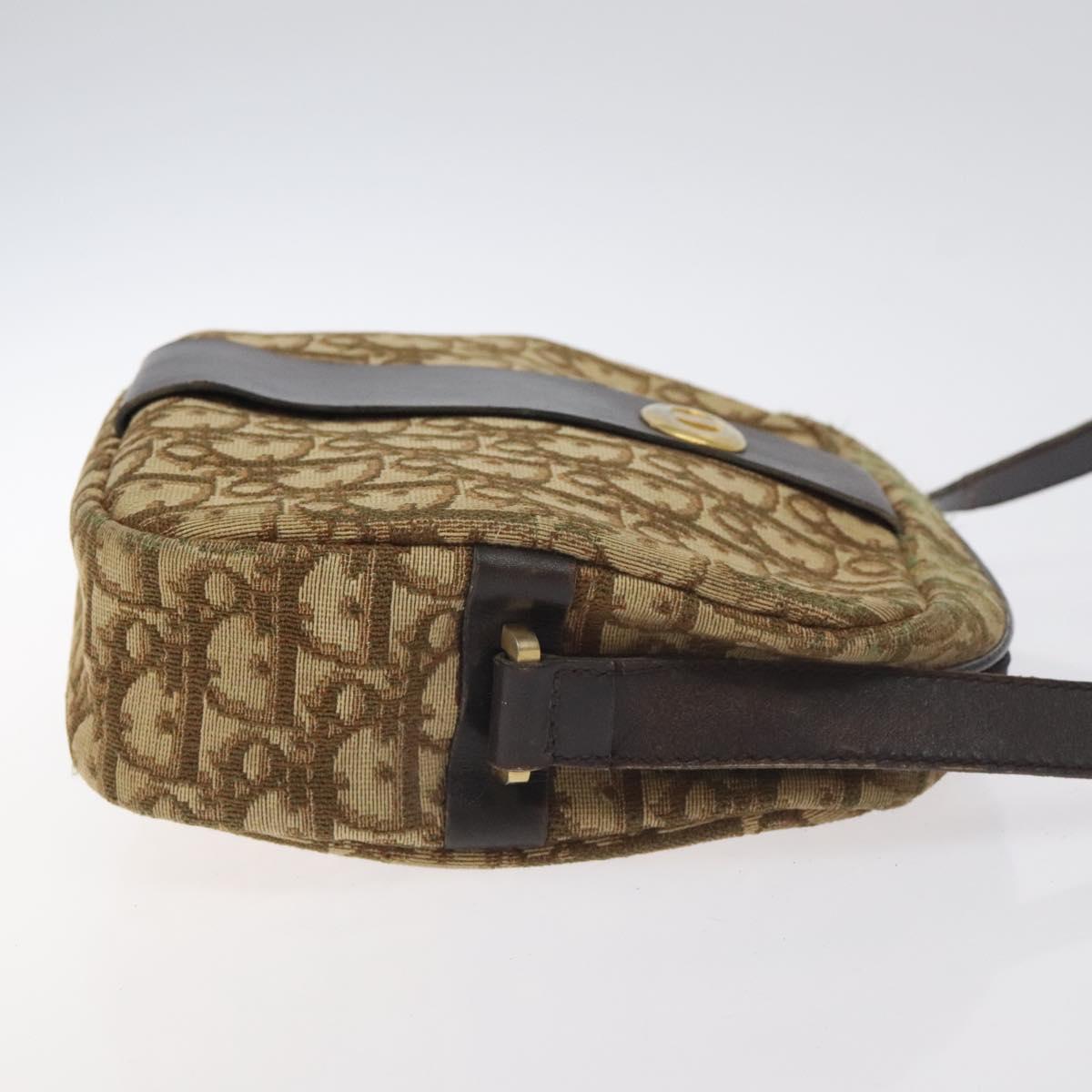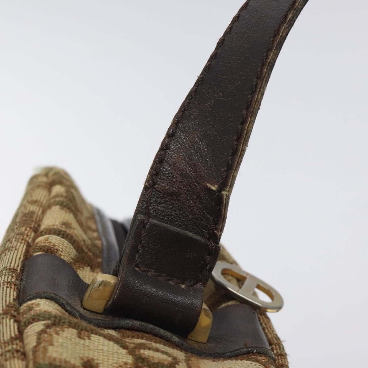 Christian Dior Trotter Canvas Shoulder Bag Brown Gold Auth SW985