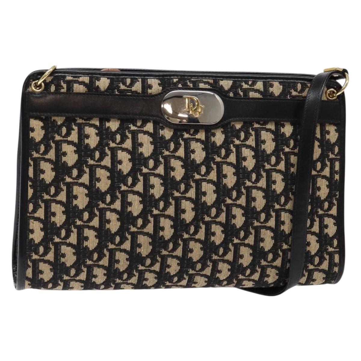 Christian Dior Trotter Canvas Shoulder Bag Navy Gold Auth 140607