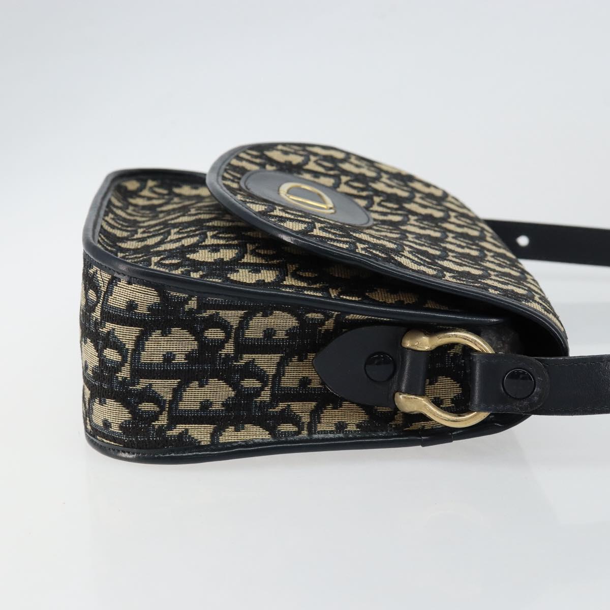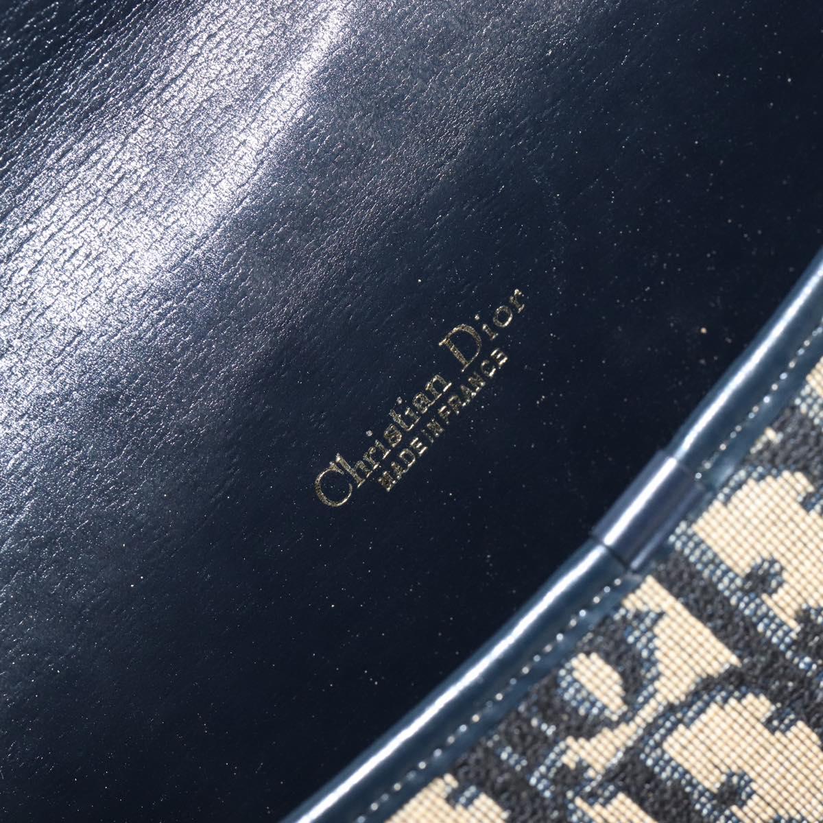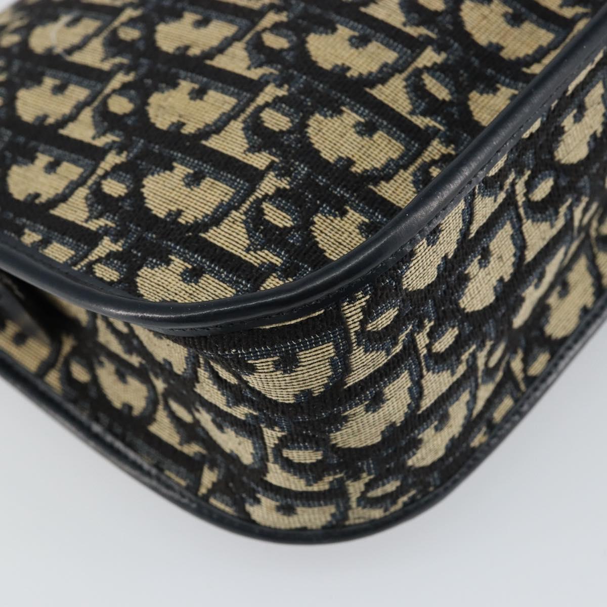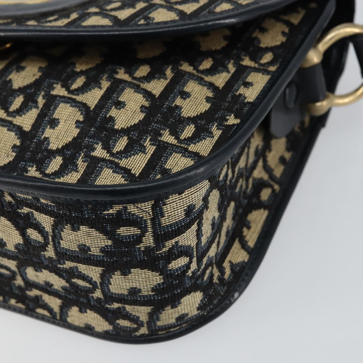 Christian Dior Trotter Canvas Shoulder Bag Navy Gold Auth 146108