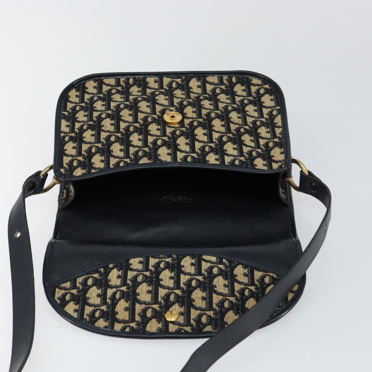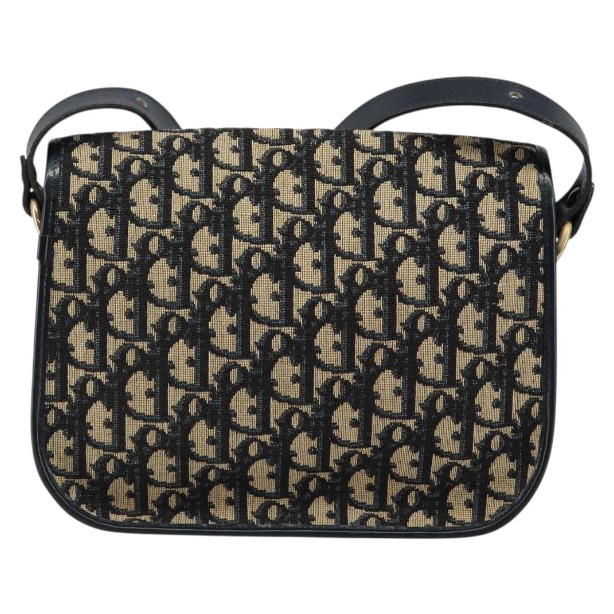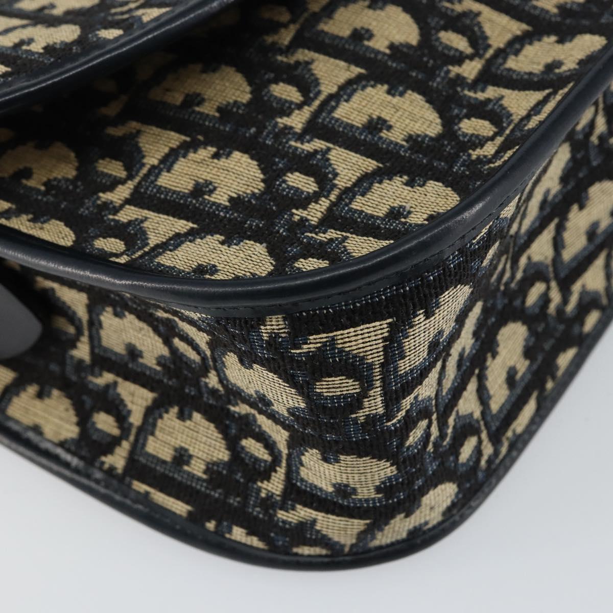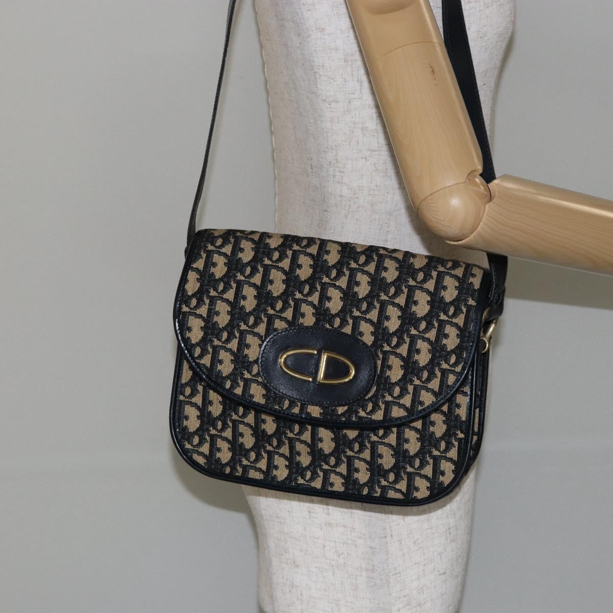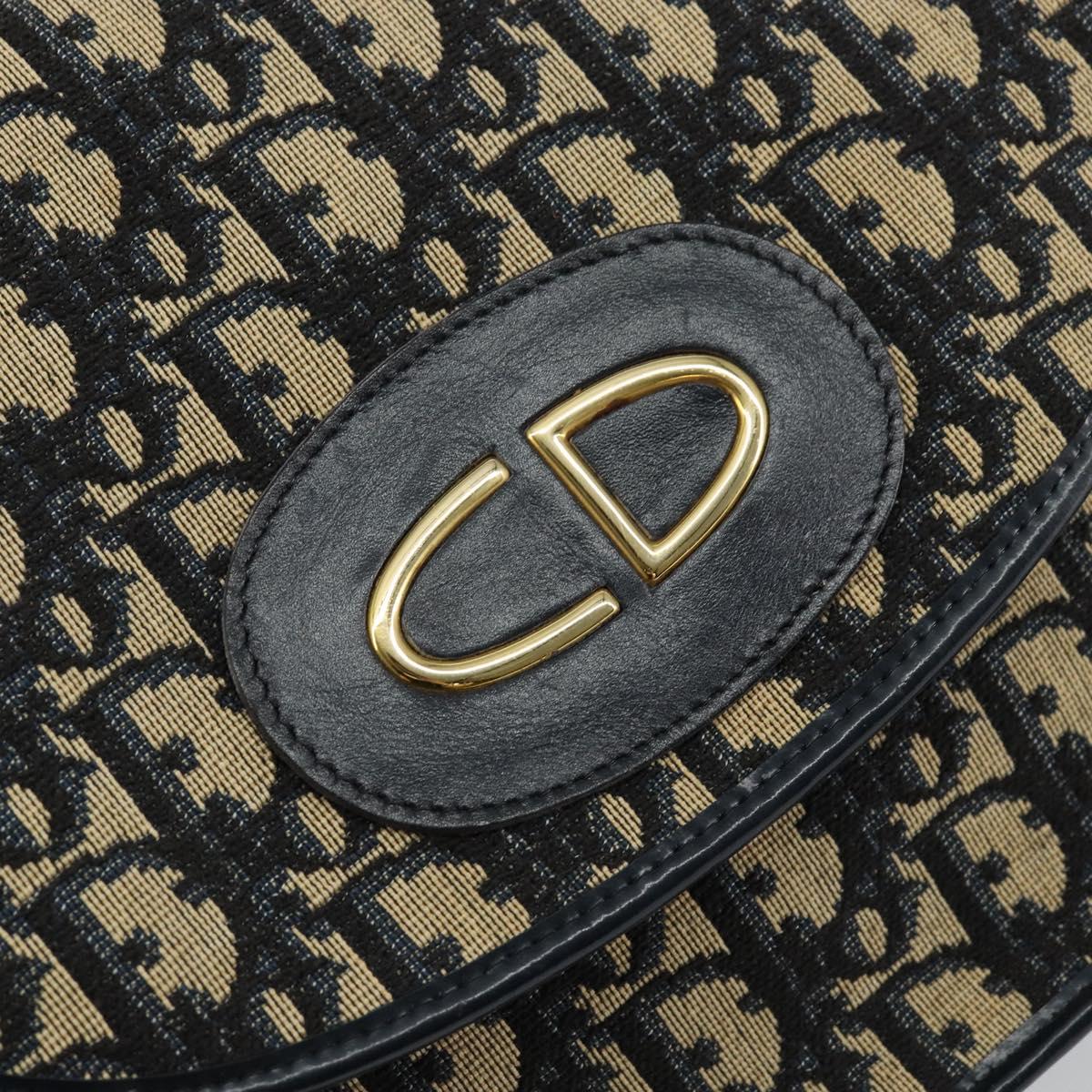 Christian Dior Trotter Canvas Shoulder Bag Navy Gold Auth 146108