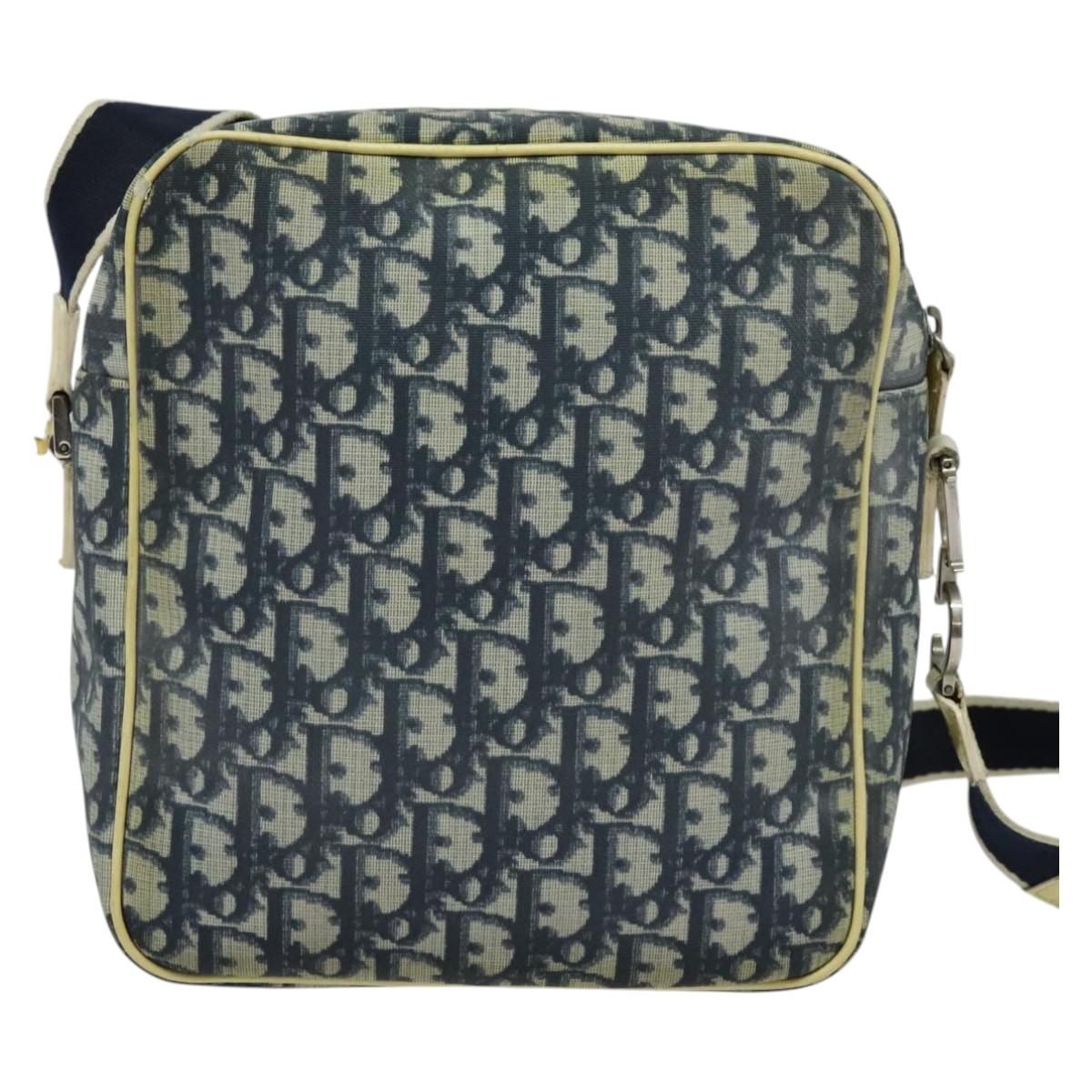 Christian Dior Trotter Canvas Shoulder Bag PVC Blue Silver Auth bs29296