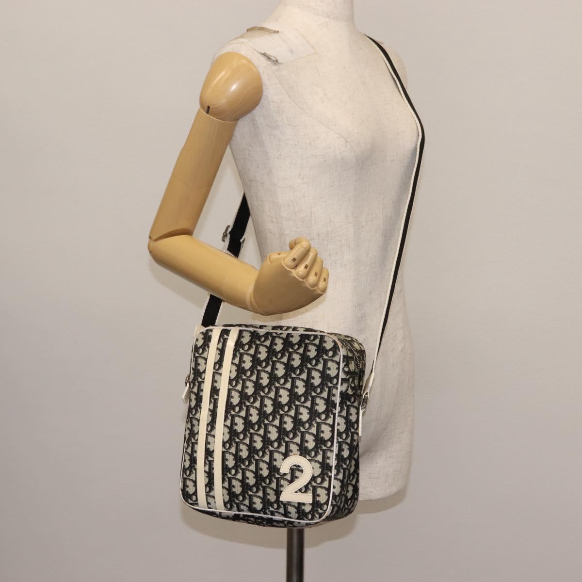 Christian Dior Trotter Canvas Shoulder Bag PVC Leather White Black Auth BA6825