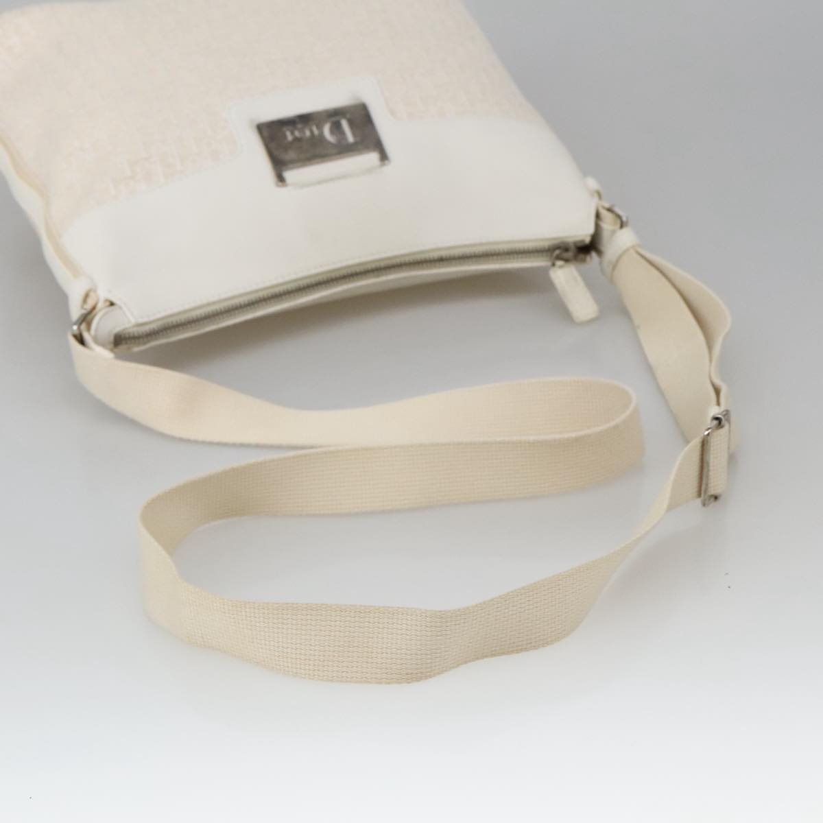 Christian Dior Trotter Canvas Shoulder Bag White Auth 103087V