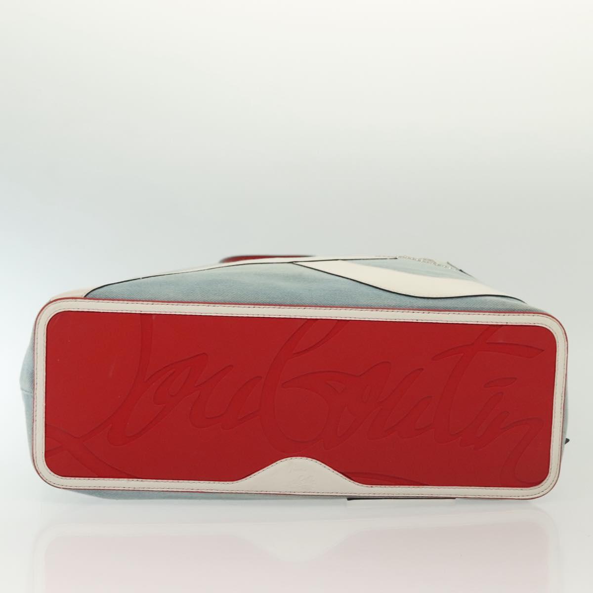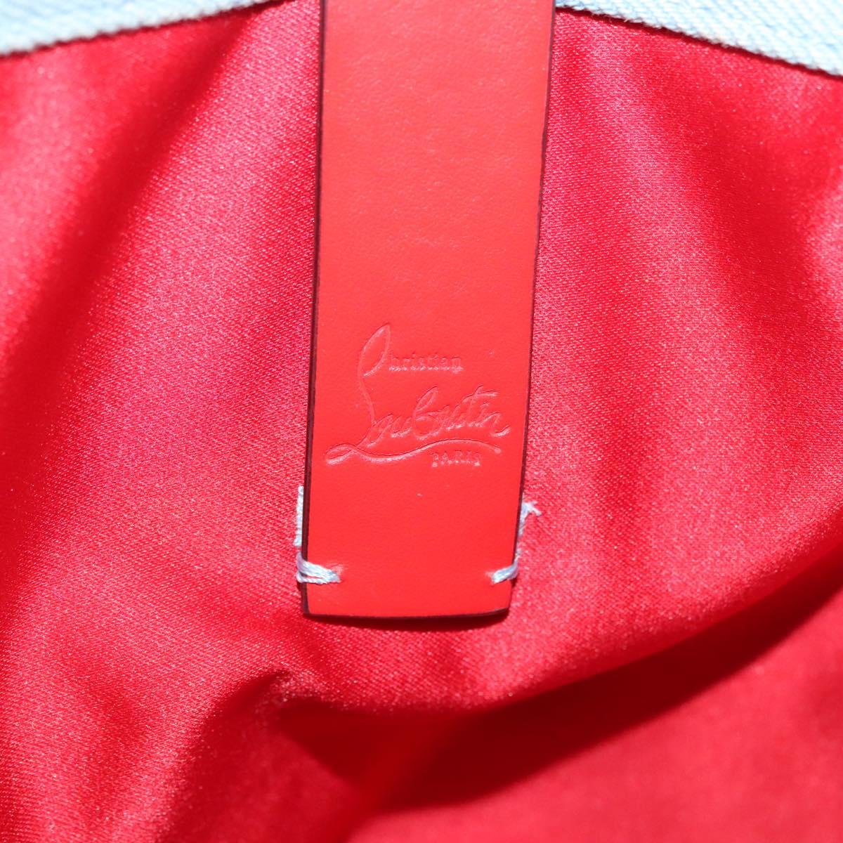 Christian Louboutin Studs Cabata Tote Bag Denim Light Blue Silver Auth 138019