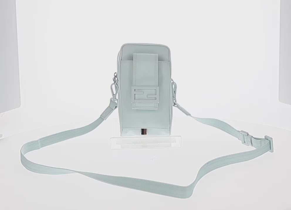 FENDI Baguette Phone Pouch Shoulder Bag Nylon Light Blue Auth 151373M