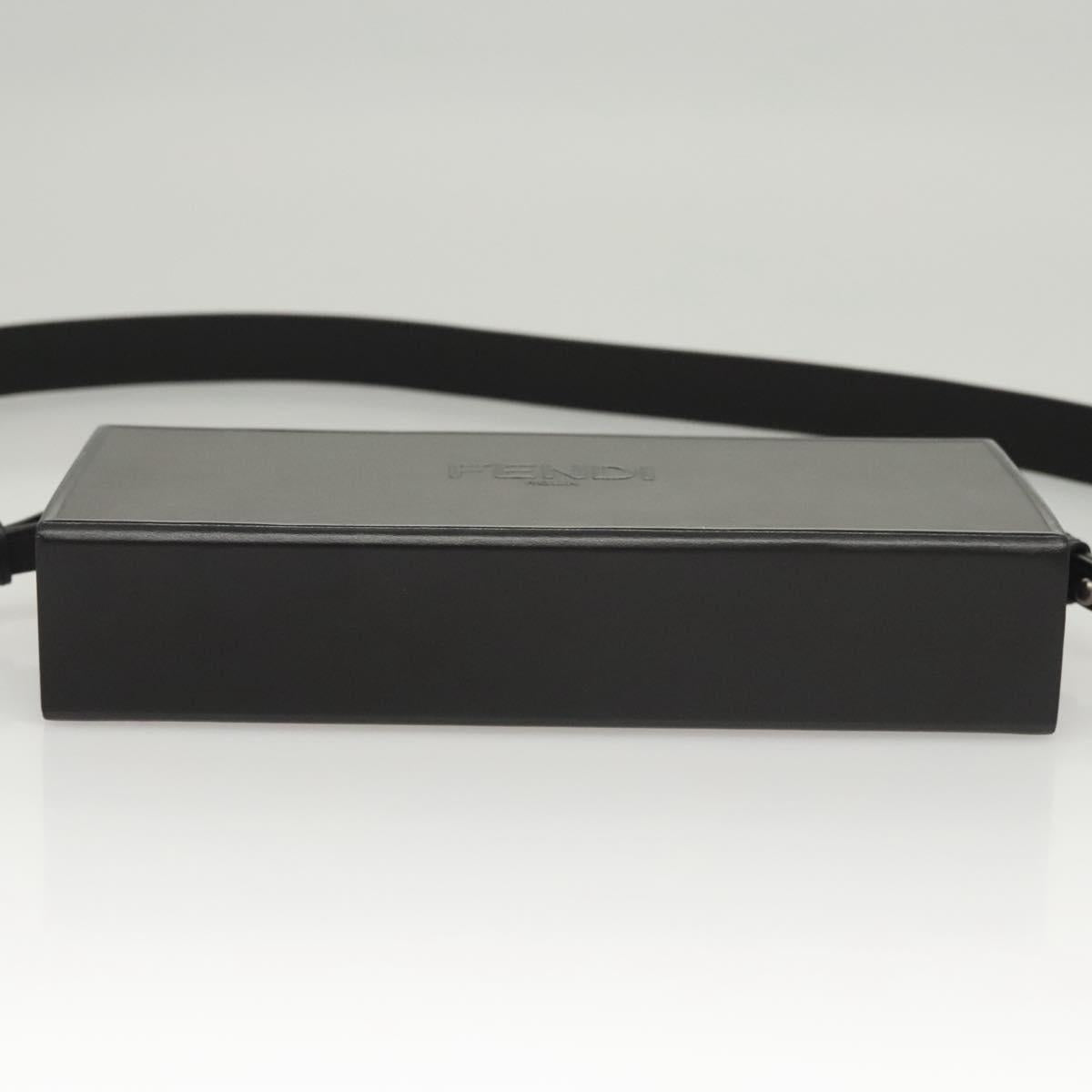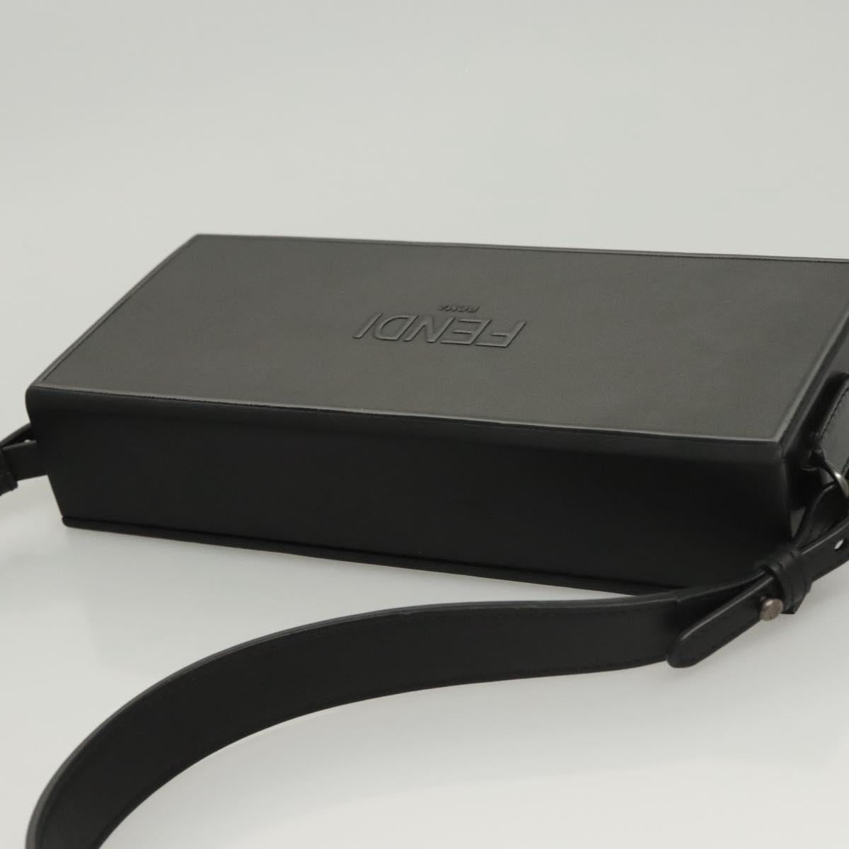 FENDI Box Shoulder Bag Leather Black Silver Auth 121070