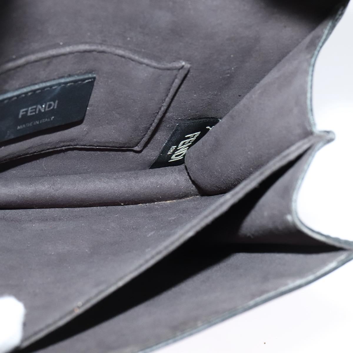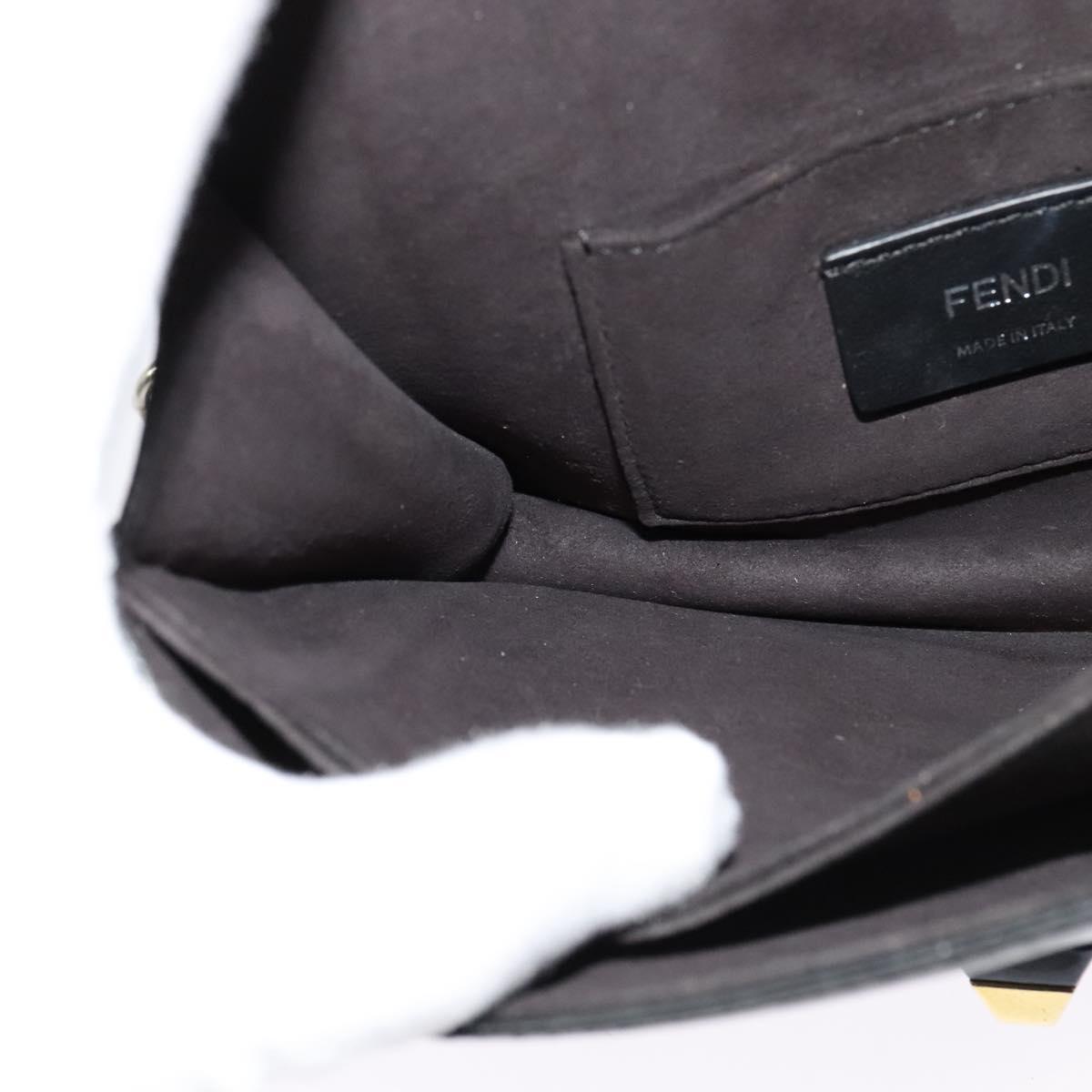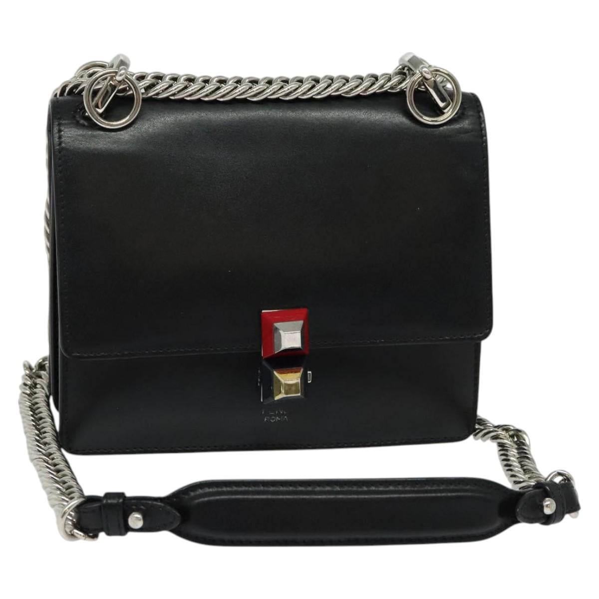 FENDI Canai Chain Shoulder Bag Leather Black Silver Auth bs26937