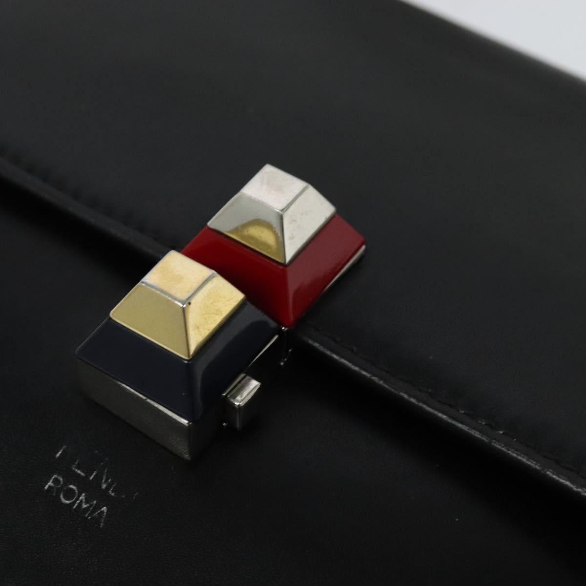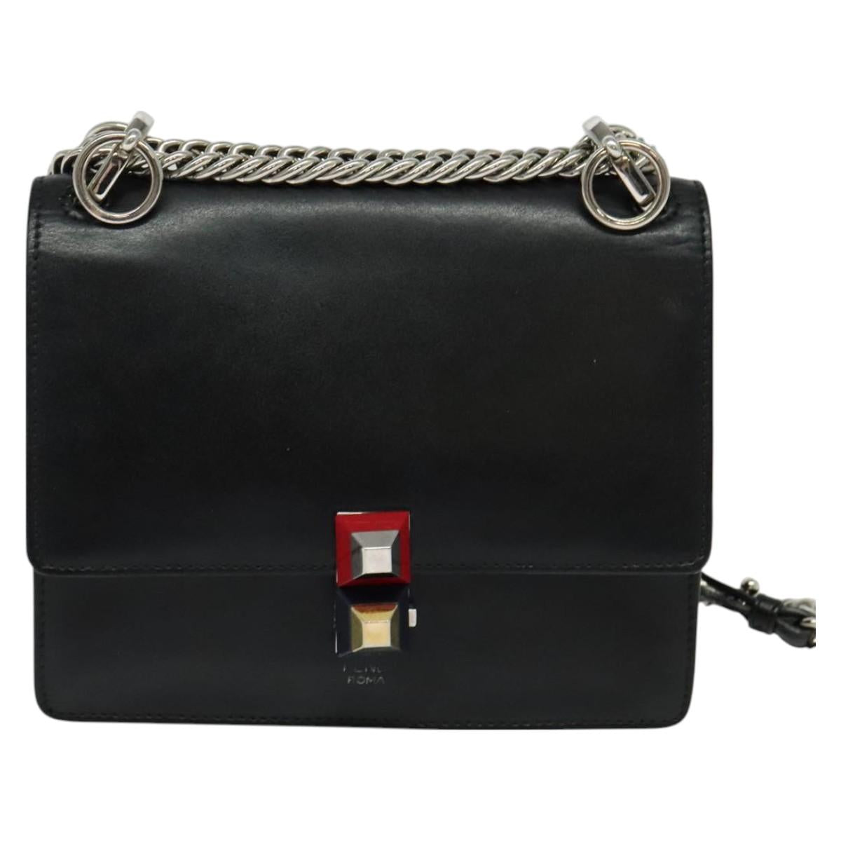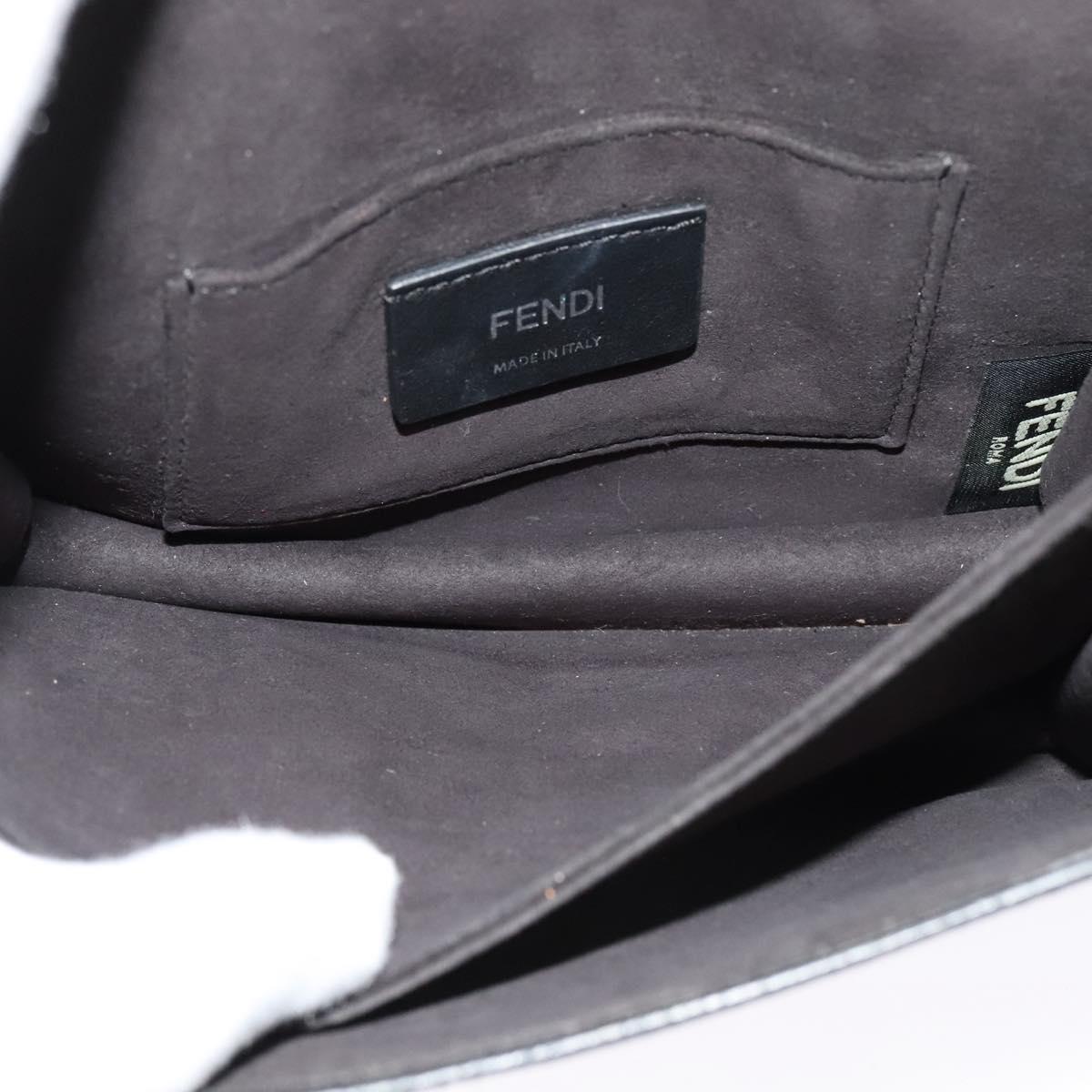 FENDI Canai Chain Shoulder Bag Leather Black Silver Auth bs26937