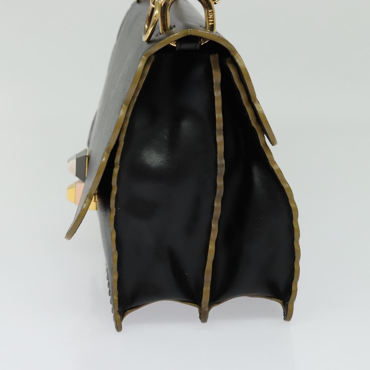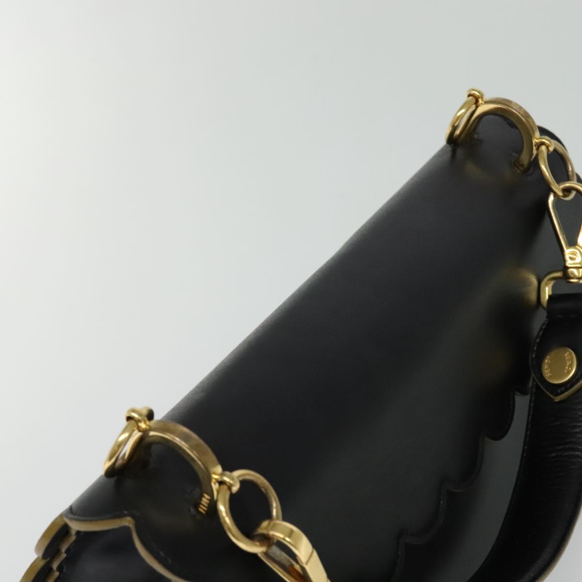FENDI Canai Hand Bag Leather 2way Black Gold Auth PP727