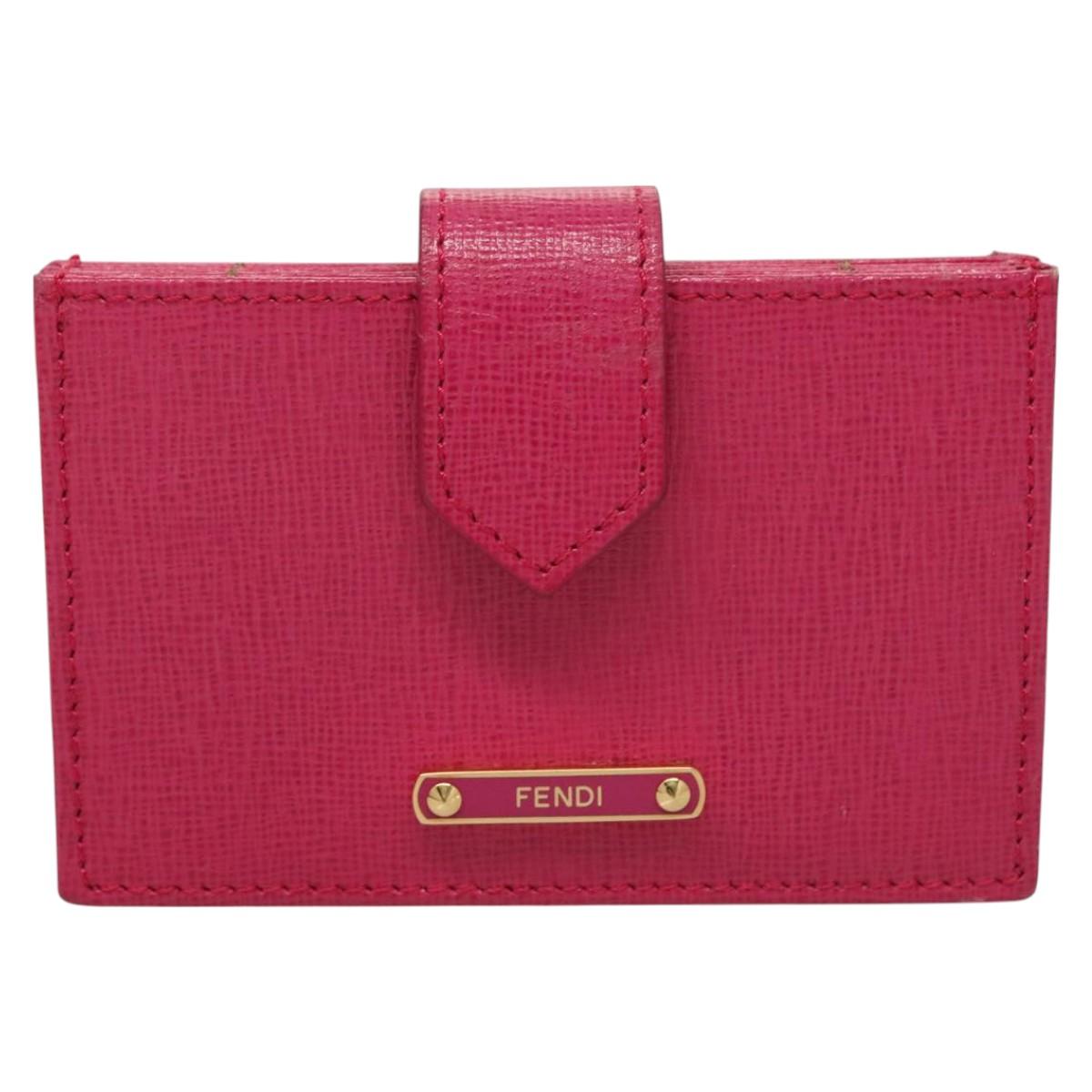FENDI Card Case Leather Pink Gold Auth SW1004