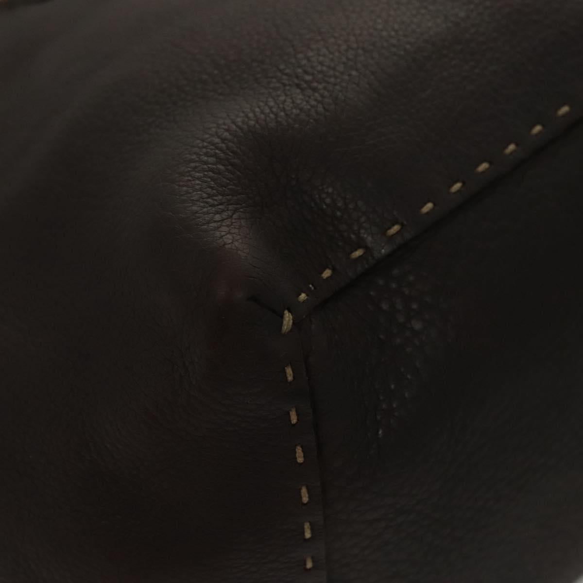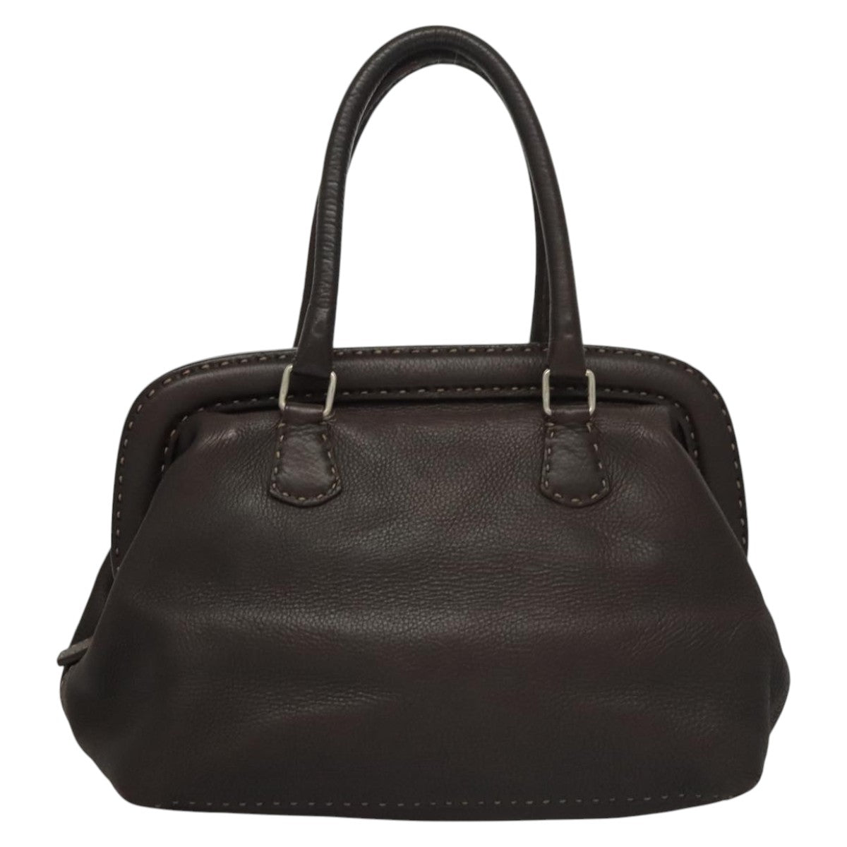 FENDI Celeria Hand Bag Leather Brown Silver Auth hk2399