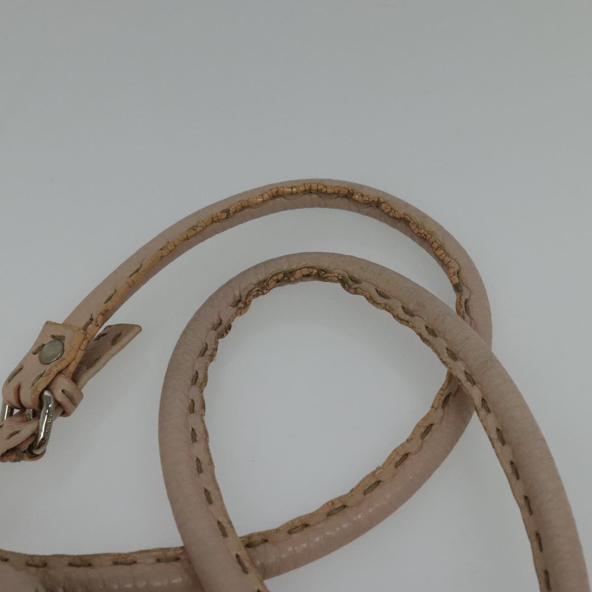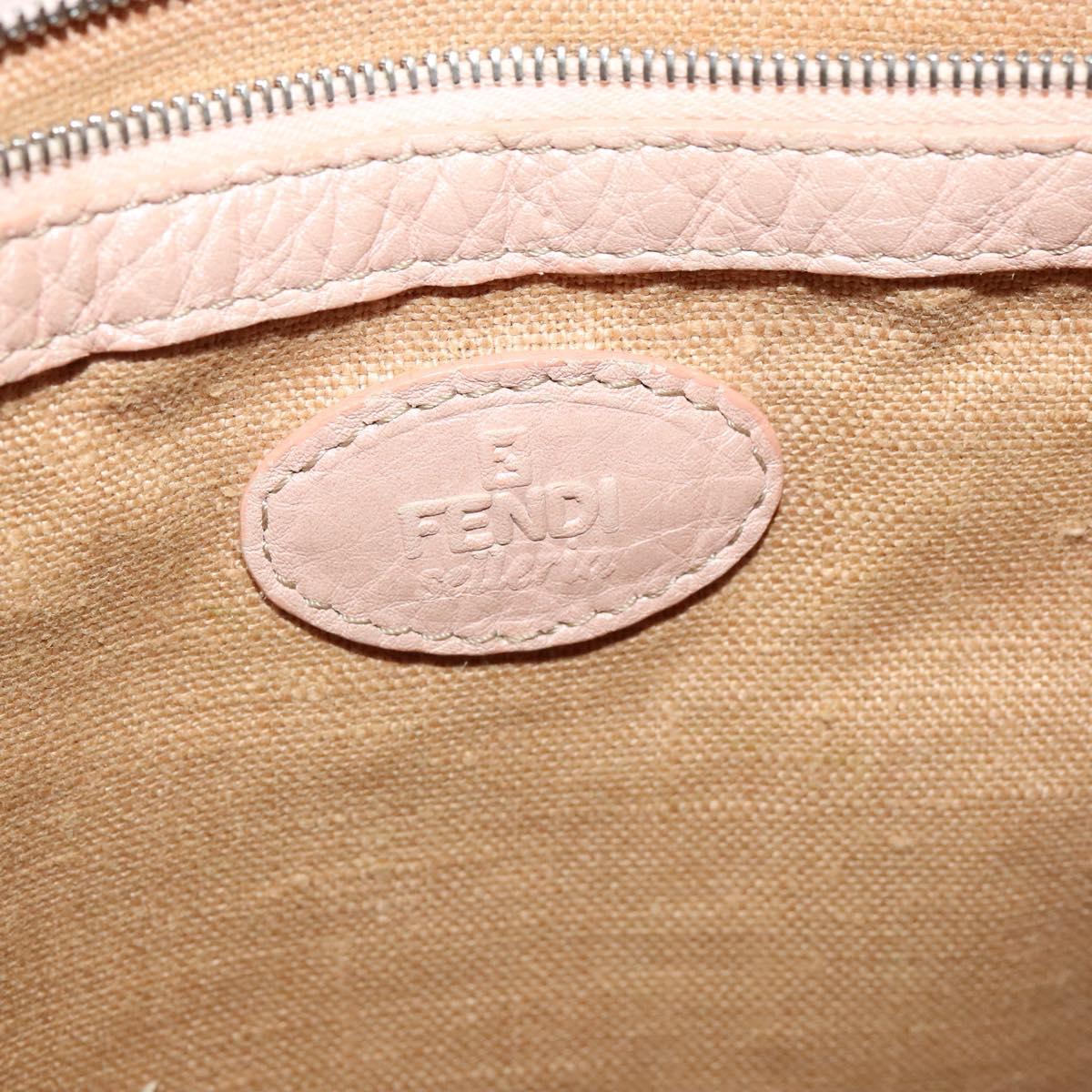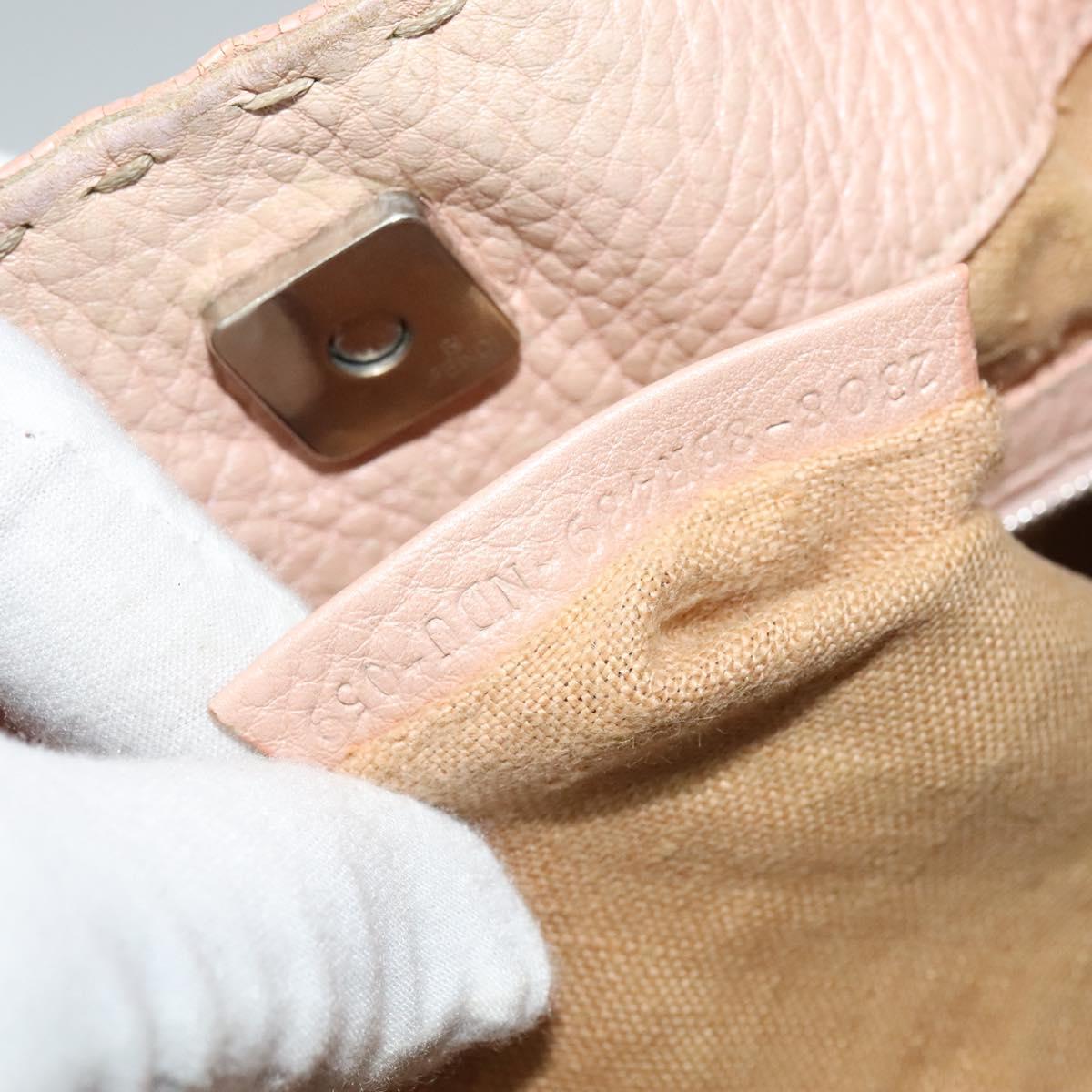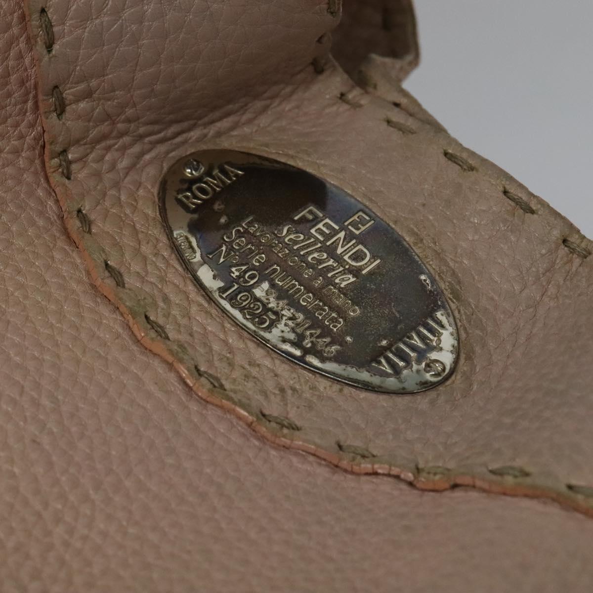 FENDI Celeria Shoulder Bag Leather Beige Silver Auth 123101