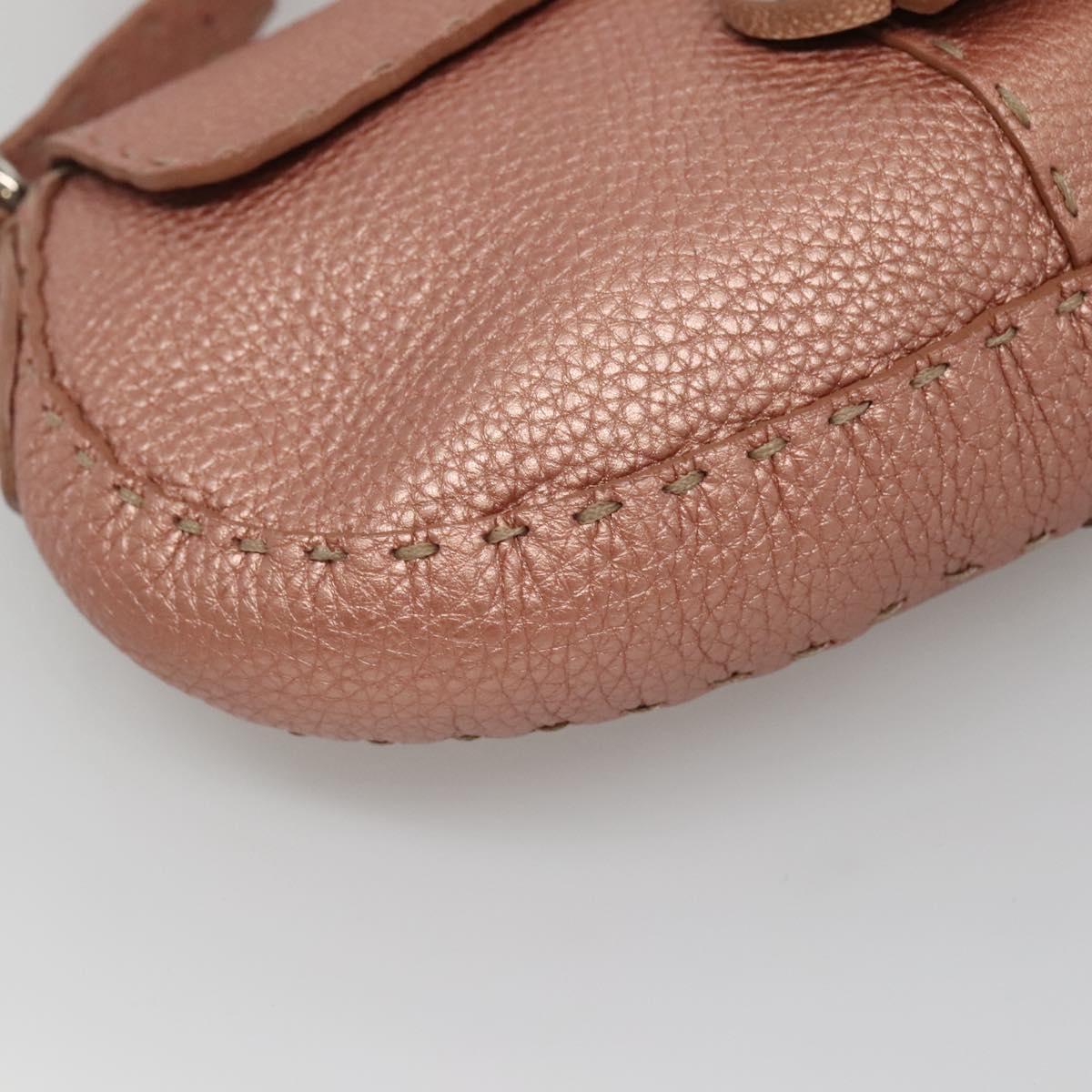 FENDI Celeria Shoulder Bag Leather Pink Silver Auth BA5547
