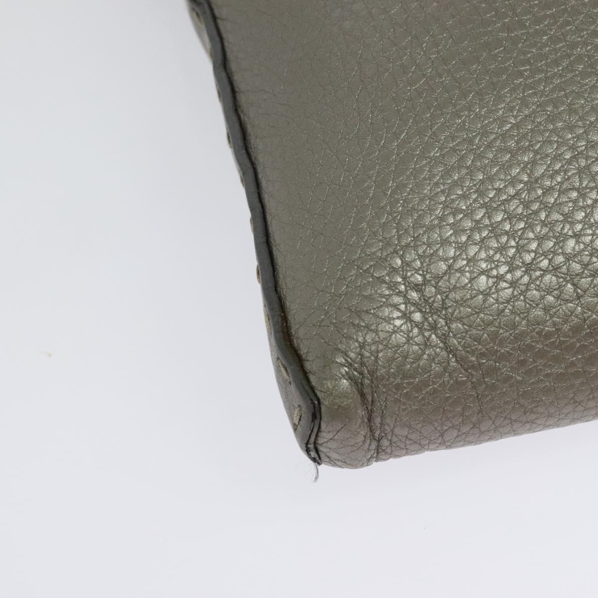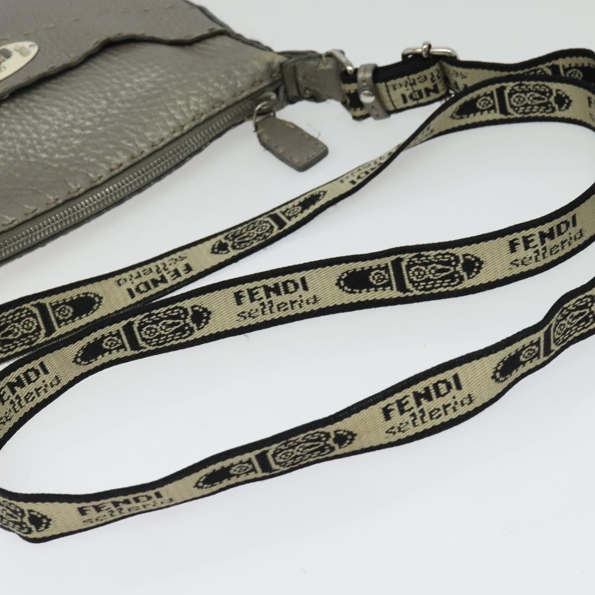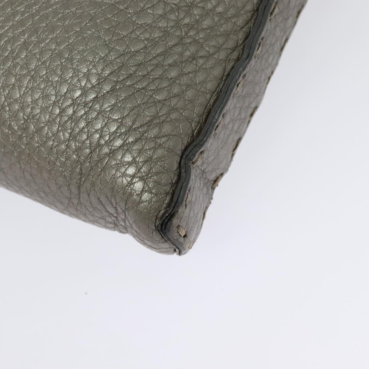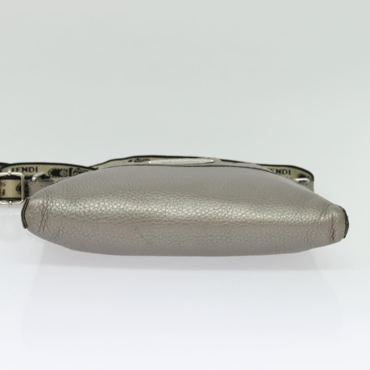 FENDI Celeria Shoulder Bag Leather Silver Auth BA5363