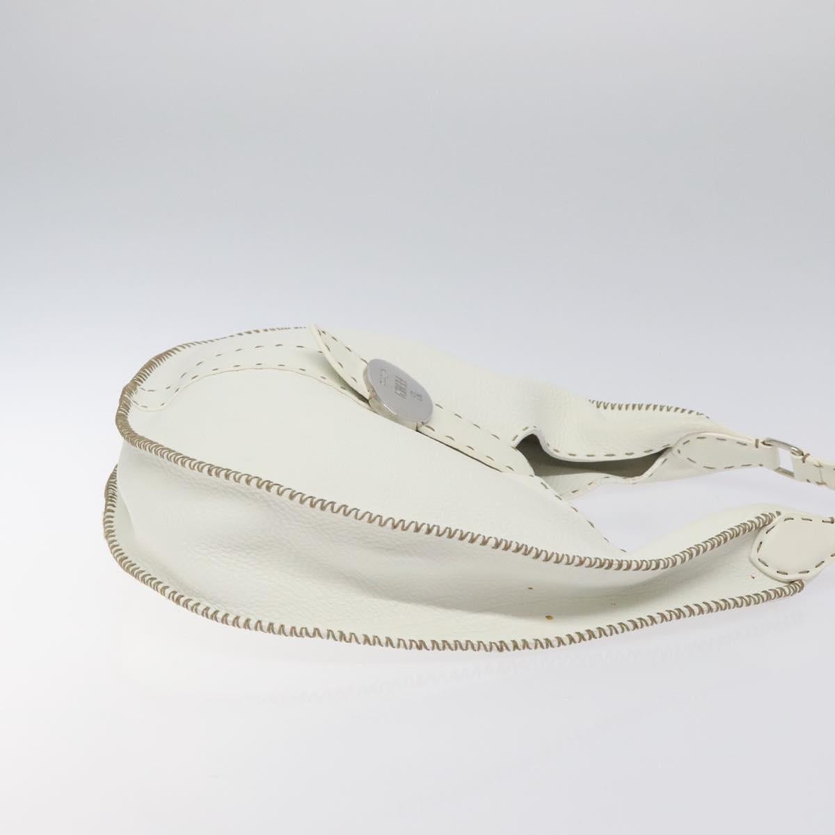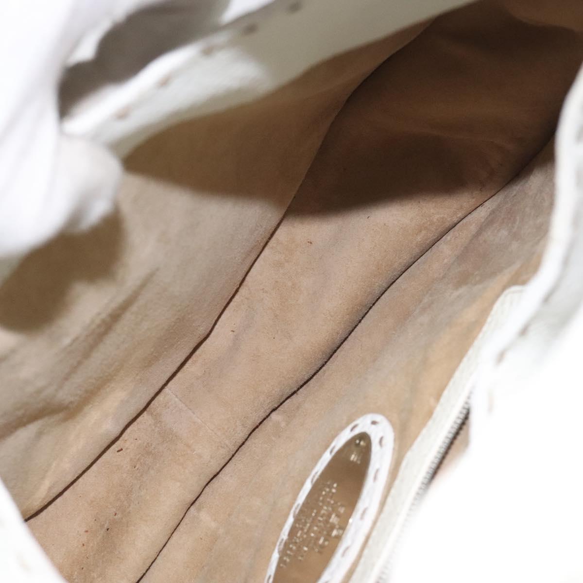 FENDI Celeria Shoulder Bag Leather Silver White Auth yk18082