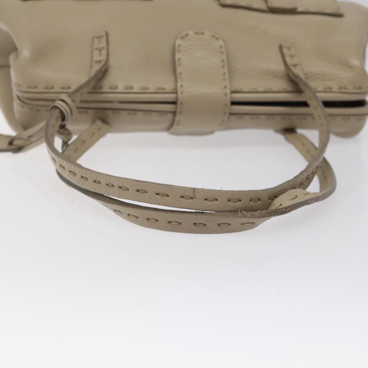 FENDI Celeria Tote Bag Leather Beige Auth 117585