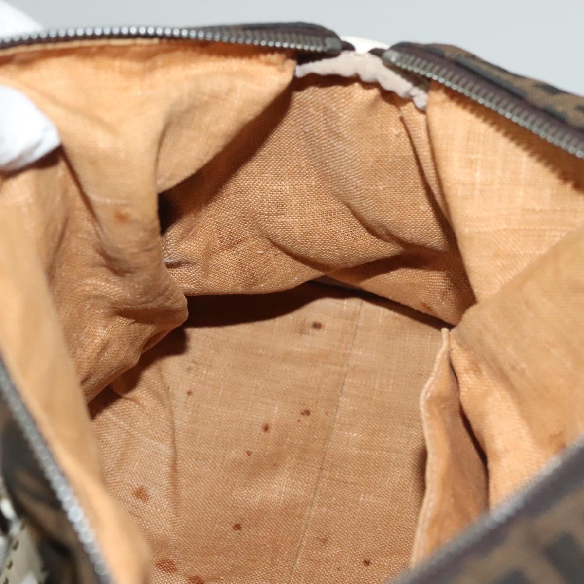 FENDI Celeria Zucca Canvas Hand Bag Black Silver Brown Auth 136283