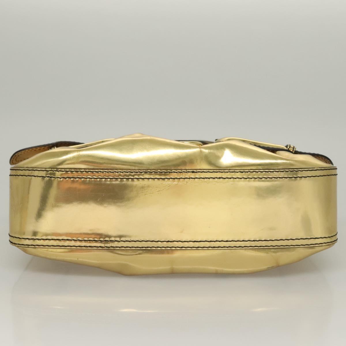FENDI Chain Shoulder Bag Leather Gold Auth 135997