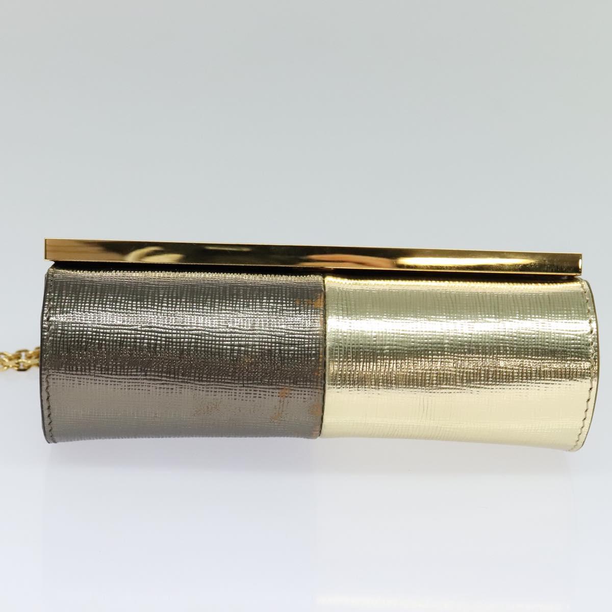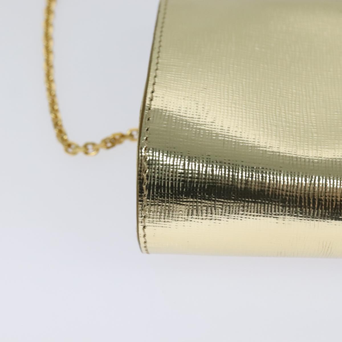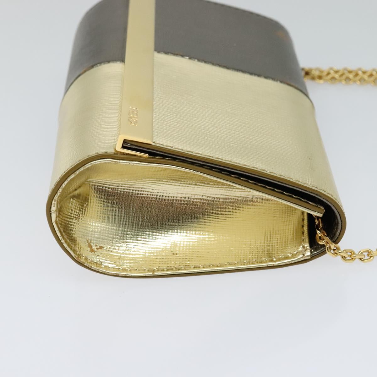 FENDI Chain Shoulder Bag Leather Gold Tone Auth 114194