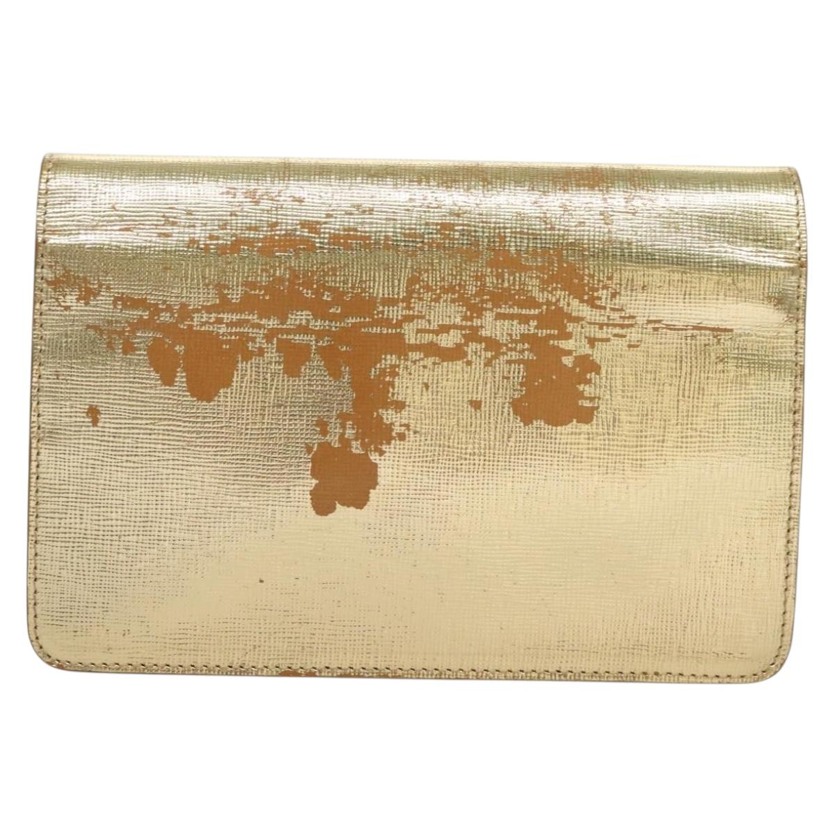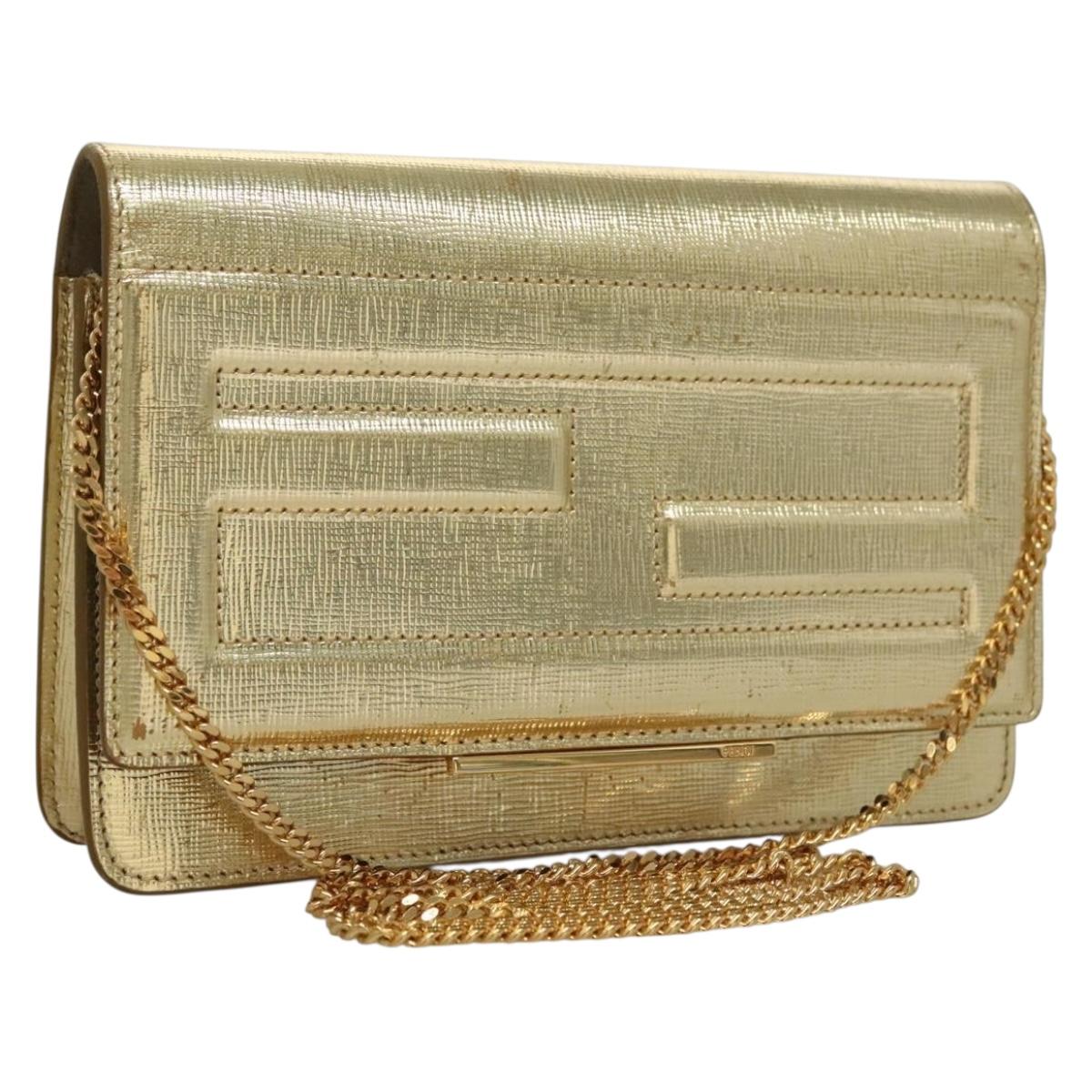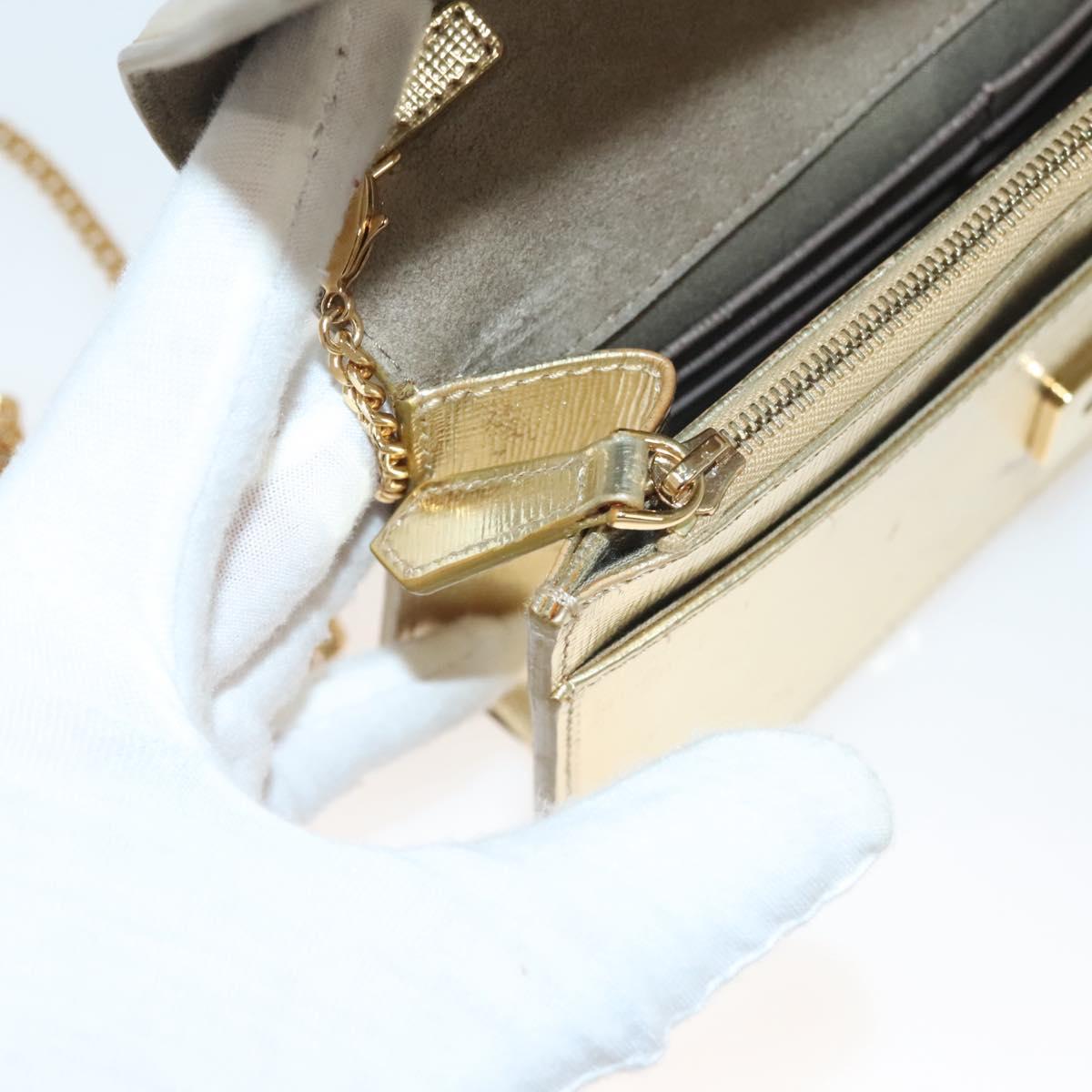 FENDI Chain Wallet Leather Gold Auth 132749