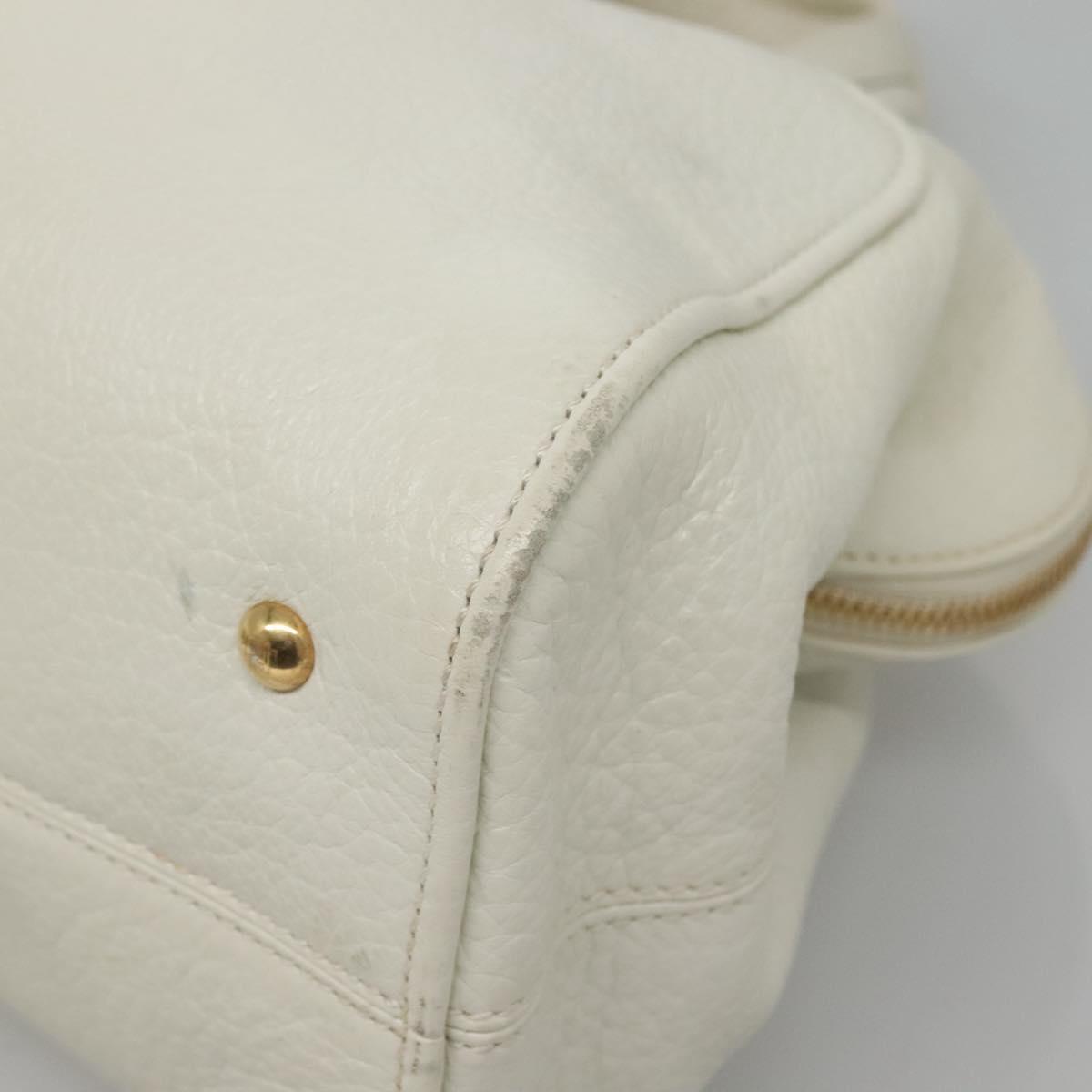 FENDI Chameleon Hand Bag Leather 2way White Gold Auth yk18403