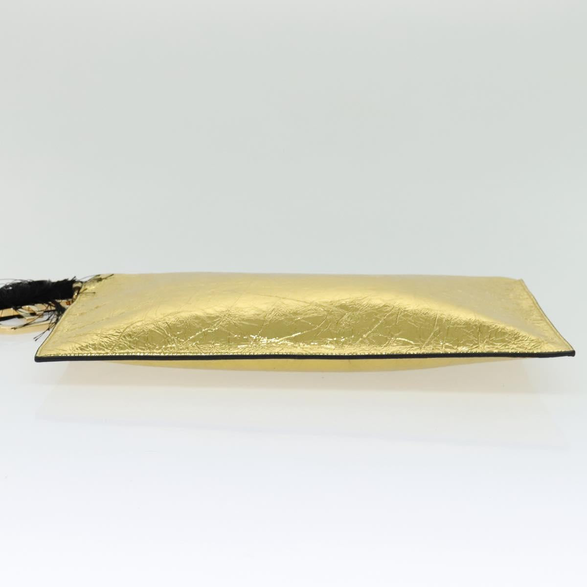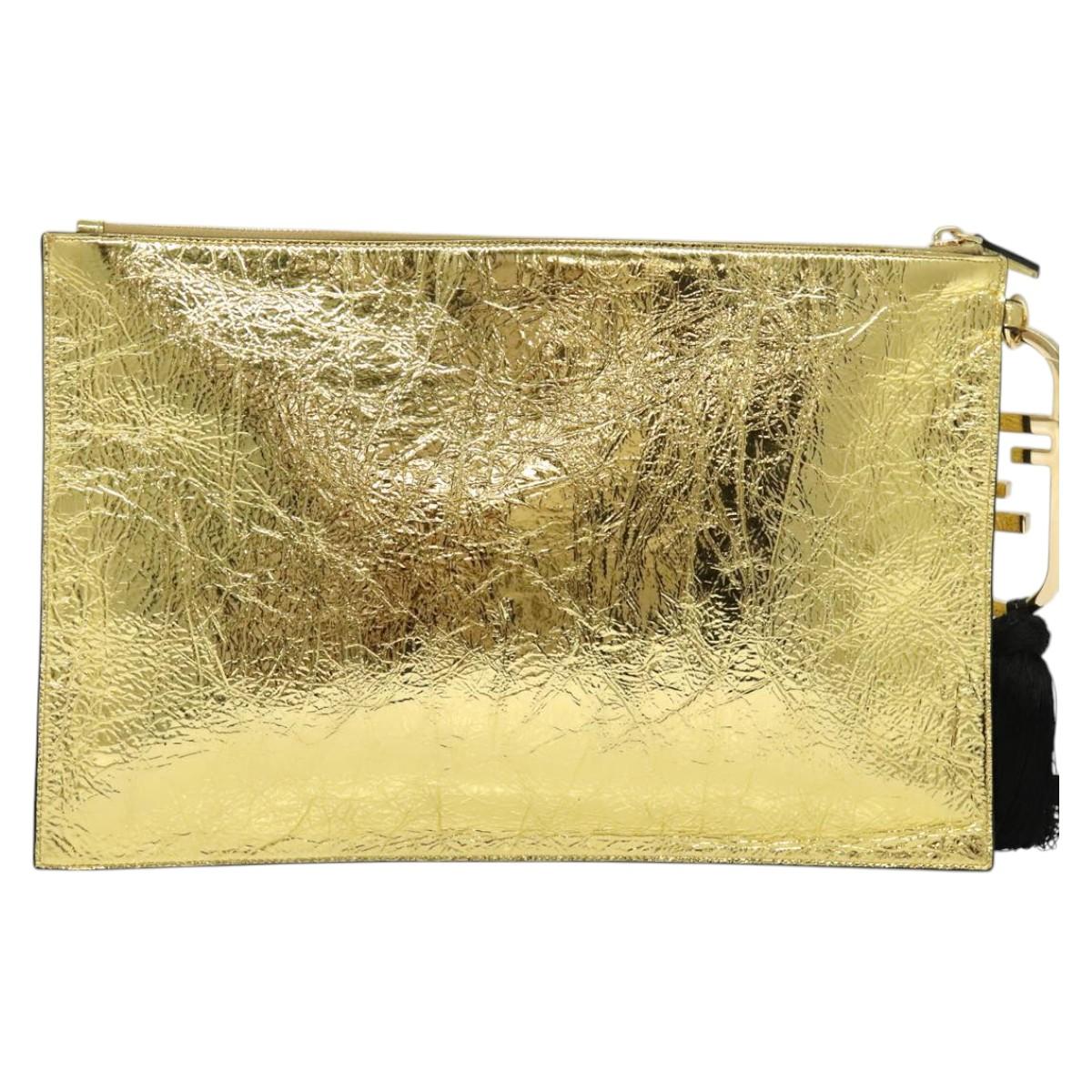 FENDI Clutch Bag Leather Brown Gold Auth mr1110V