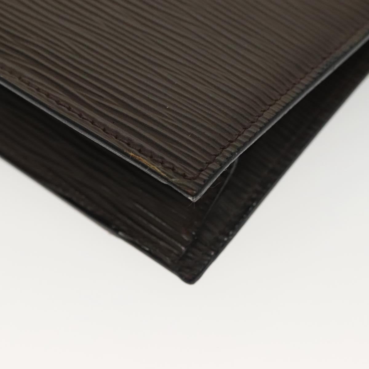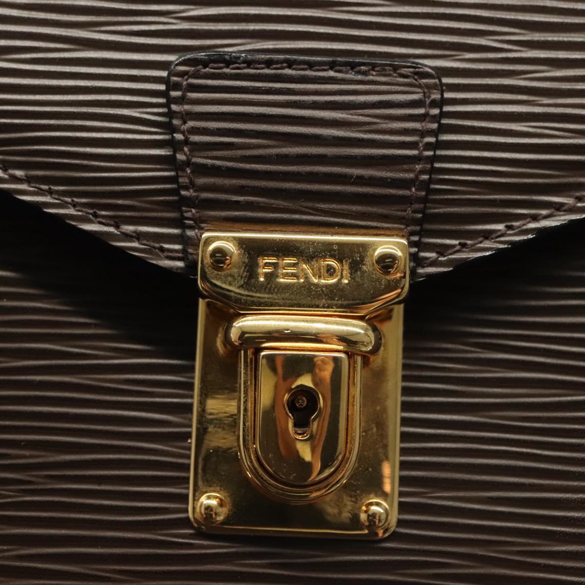 FENDI Clutch Bag Leather Dark Brown Gold Auth BA4627