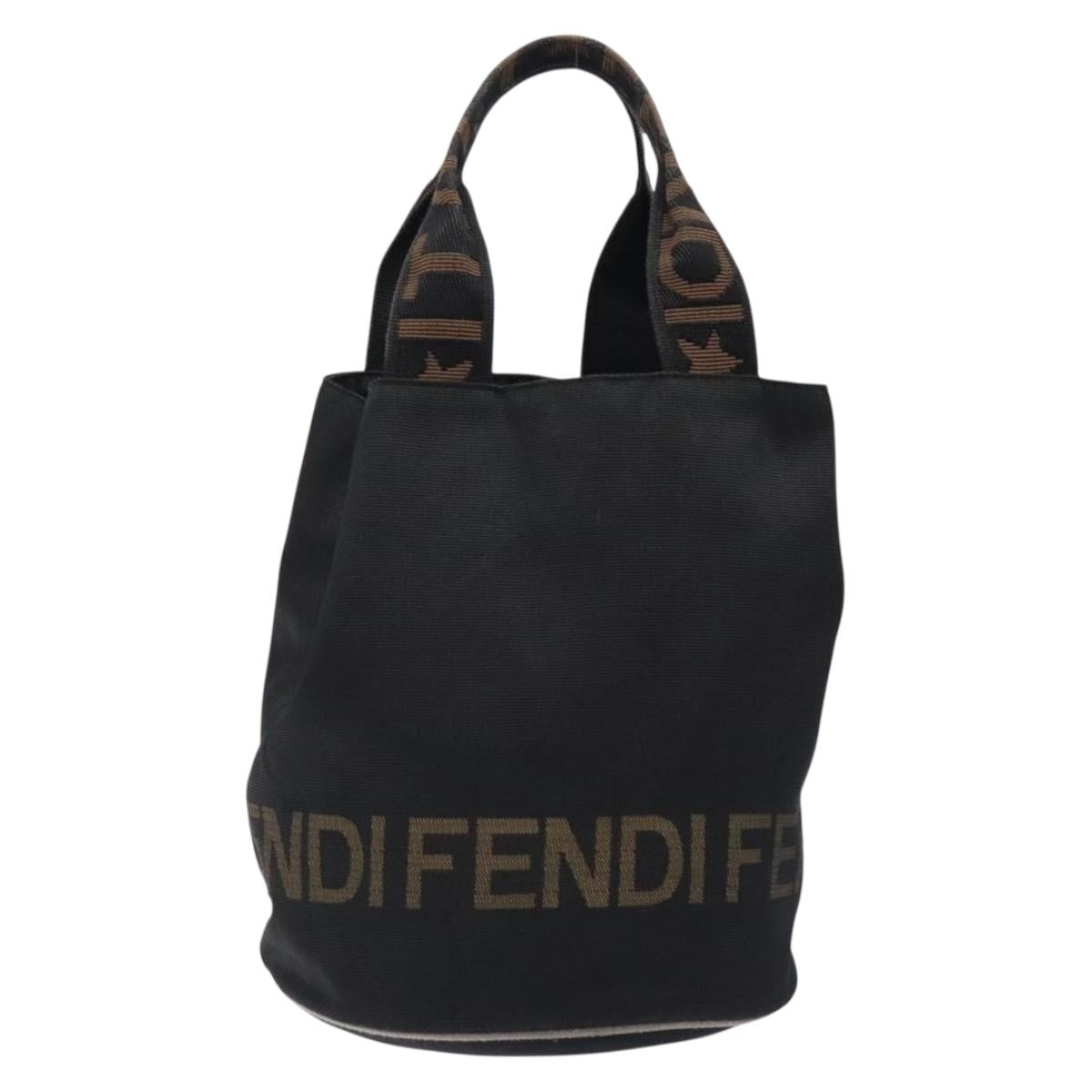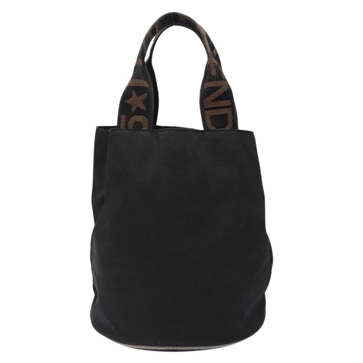 FENDI Hand Bag Canvas Black Silver Auth bs28083