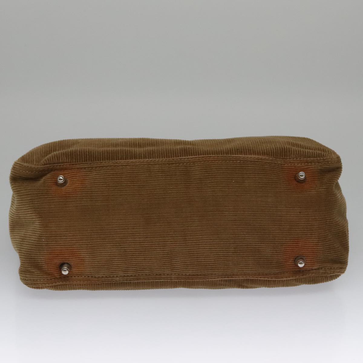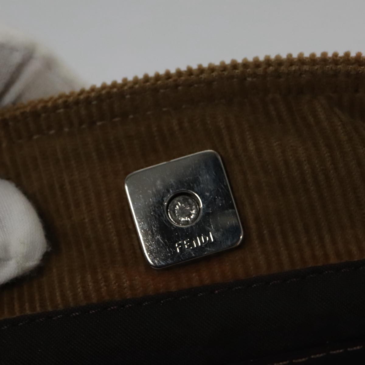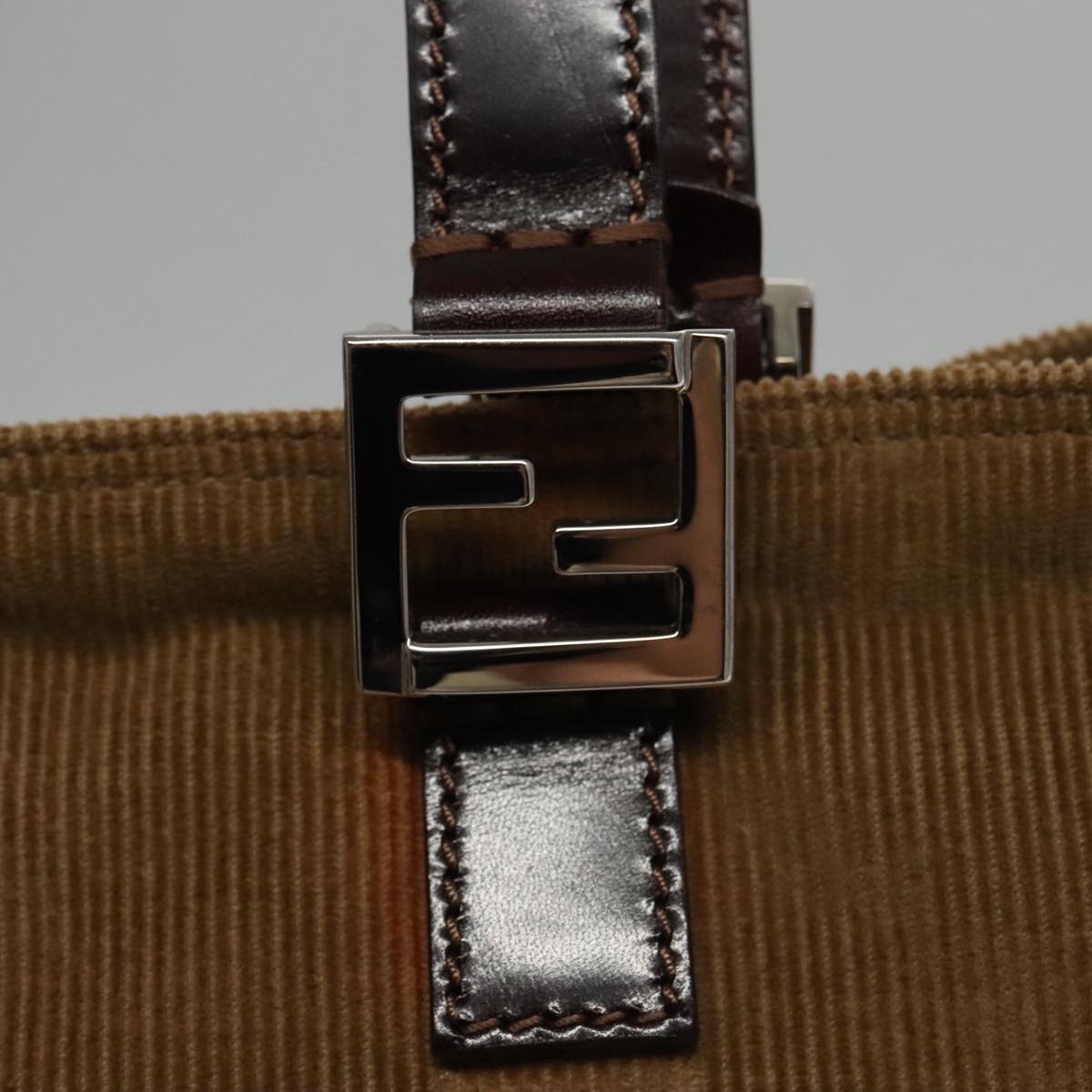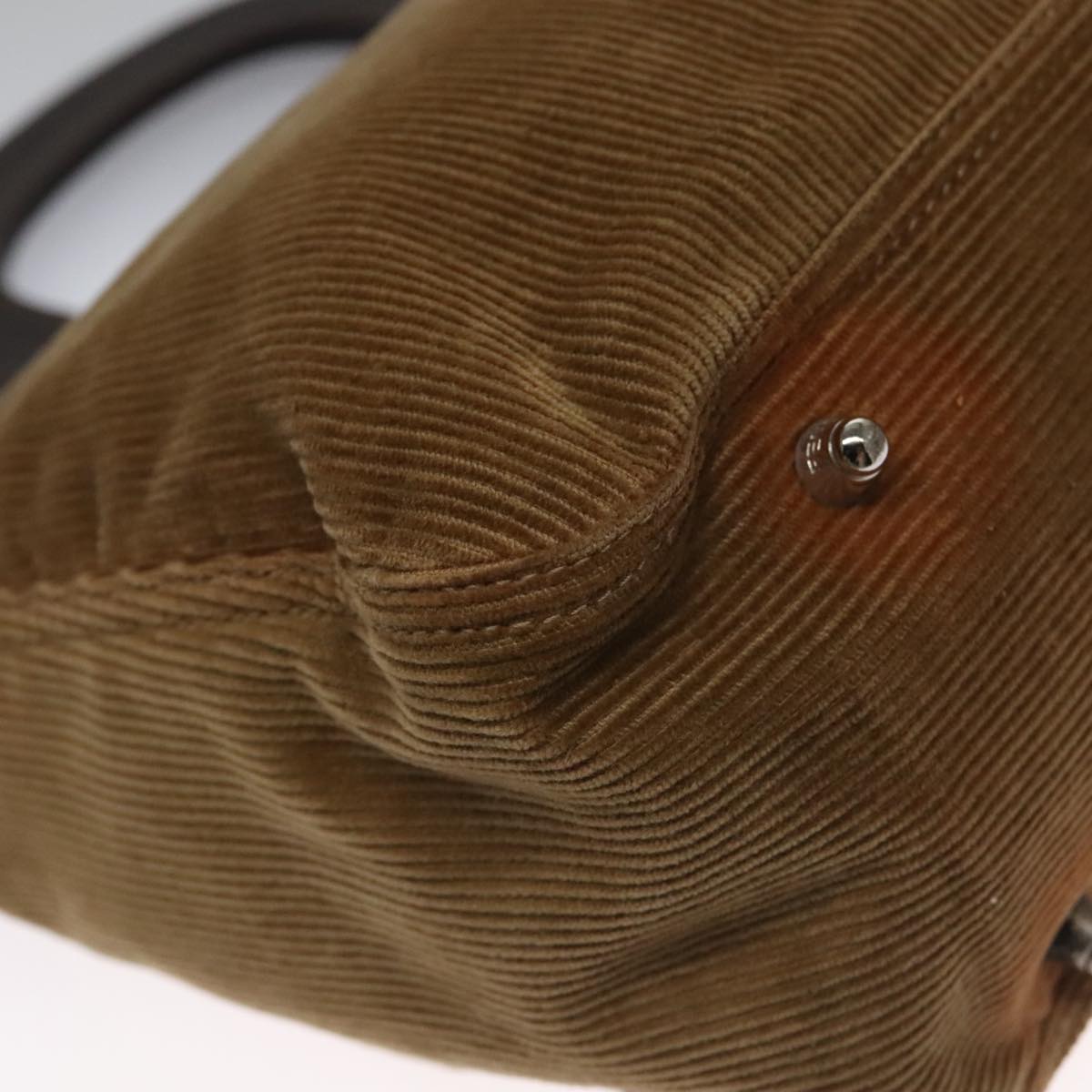 FENDI Hand Bag Corduroy Brown Silver Auth 102866